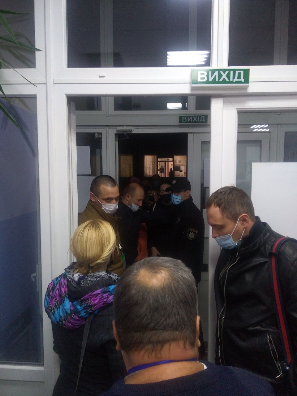 Орієнтовно о 22:00 на виклик прибули близько 10 співробітників поліції. Вони складають протокол про вчинення правопорушення.