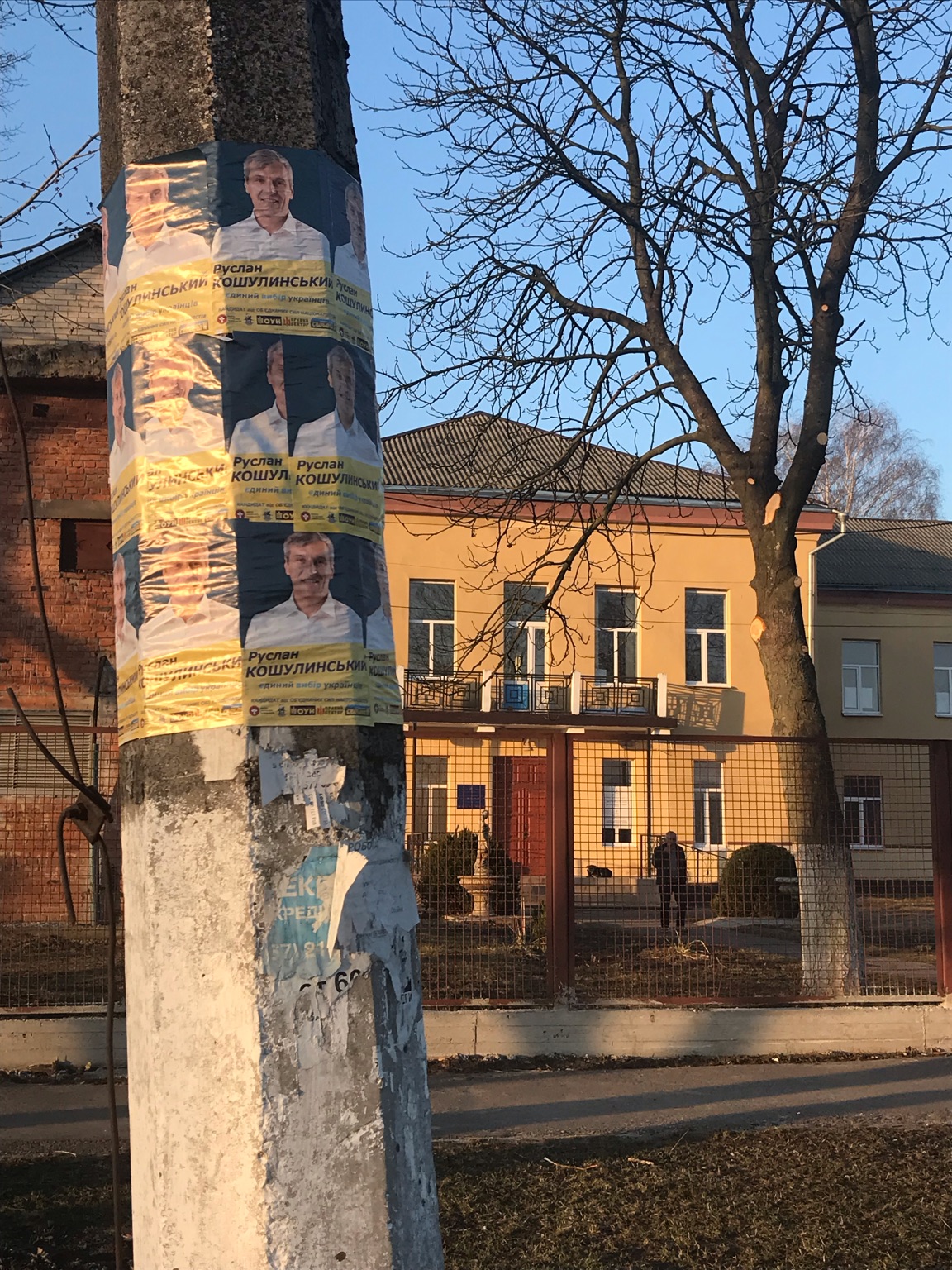 У Фастові (91 ВО) біля дільниці №321382 спостерігачі ОПОРИ зафіксували передвиборчу агітацію, а саме – плакати Руслана Кошулинського, якими був обклеєний стовп біля школи, де знаходиться дільниця.