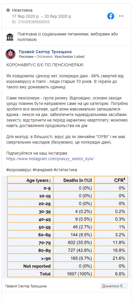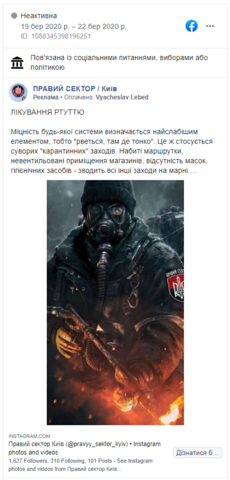 Сторінки «Правого сектору» використовували тему карантину як для критики влади, так і для інформування читачів: