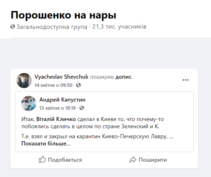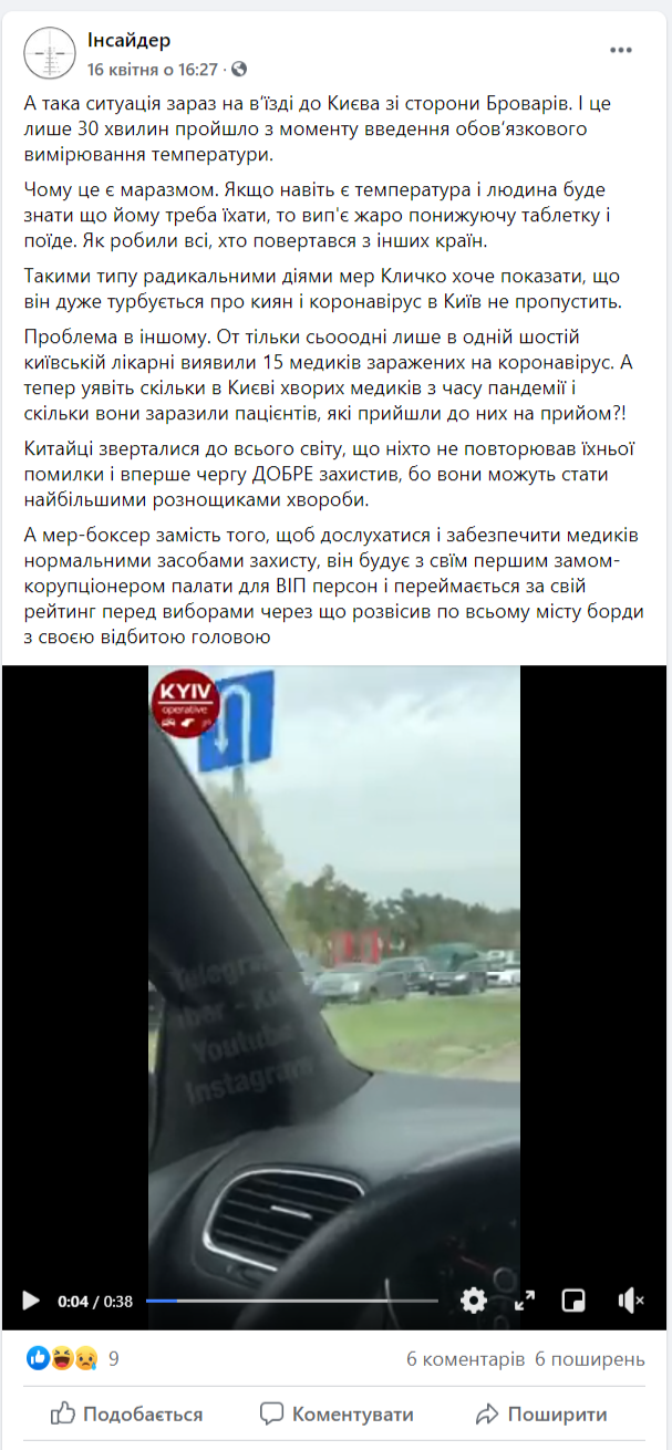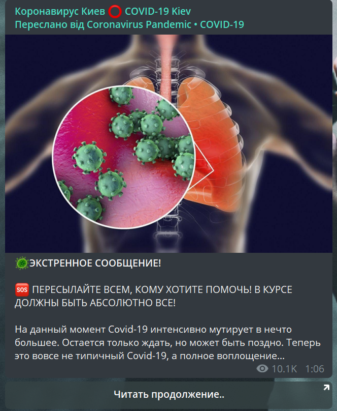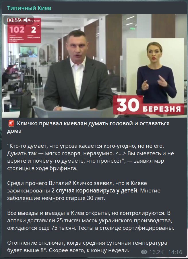 Поширюючи офіційну інформацію, популярні столичні телеграм-канали не цурались і фейків або штучних сенсацій. До прикладу, 23 березня сторінка «Коронавирус Киев» поширила новину: