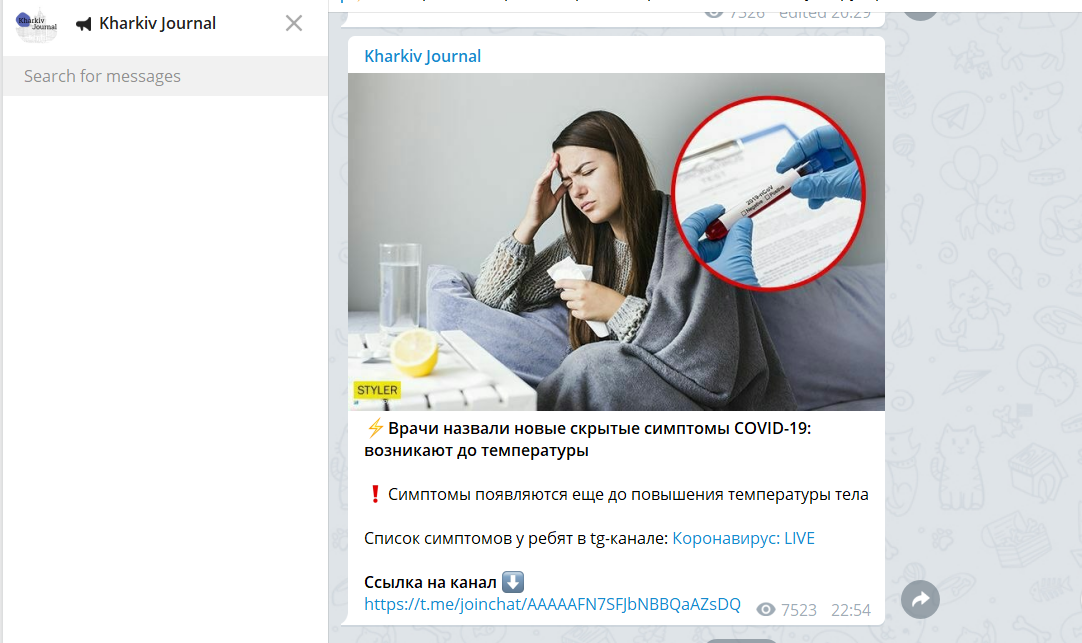 Дописи з клікбейтними заголовками ми виявили в телеграм-каналах Kharkiv Journal, ХС | Харьков, «ХуЕвости», «Коронавирус Live», «Харьков 1654», «Харьков тут ПЗДЦ», «Типичная Украина» та інших.