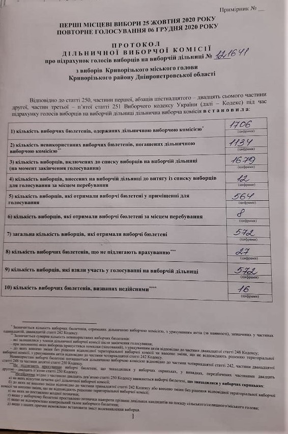 На виборчій дільниці №121641 (школа №43, актова зала, 1-й поверх) члени комісії поставили дату 7 грудня, хоча він був складений 6 грудня. Спостерігач ОПОРИ викликав поліцію.