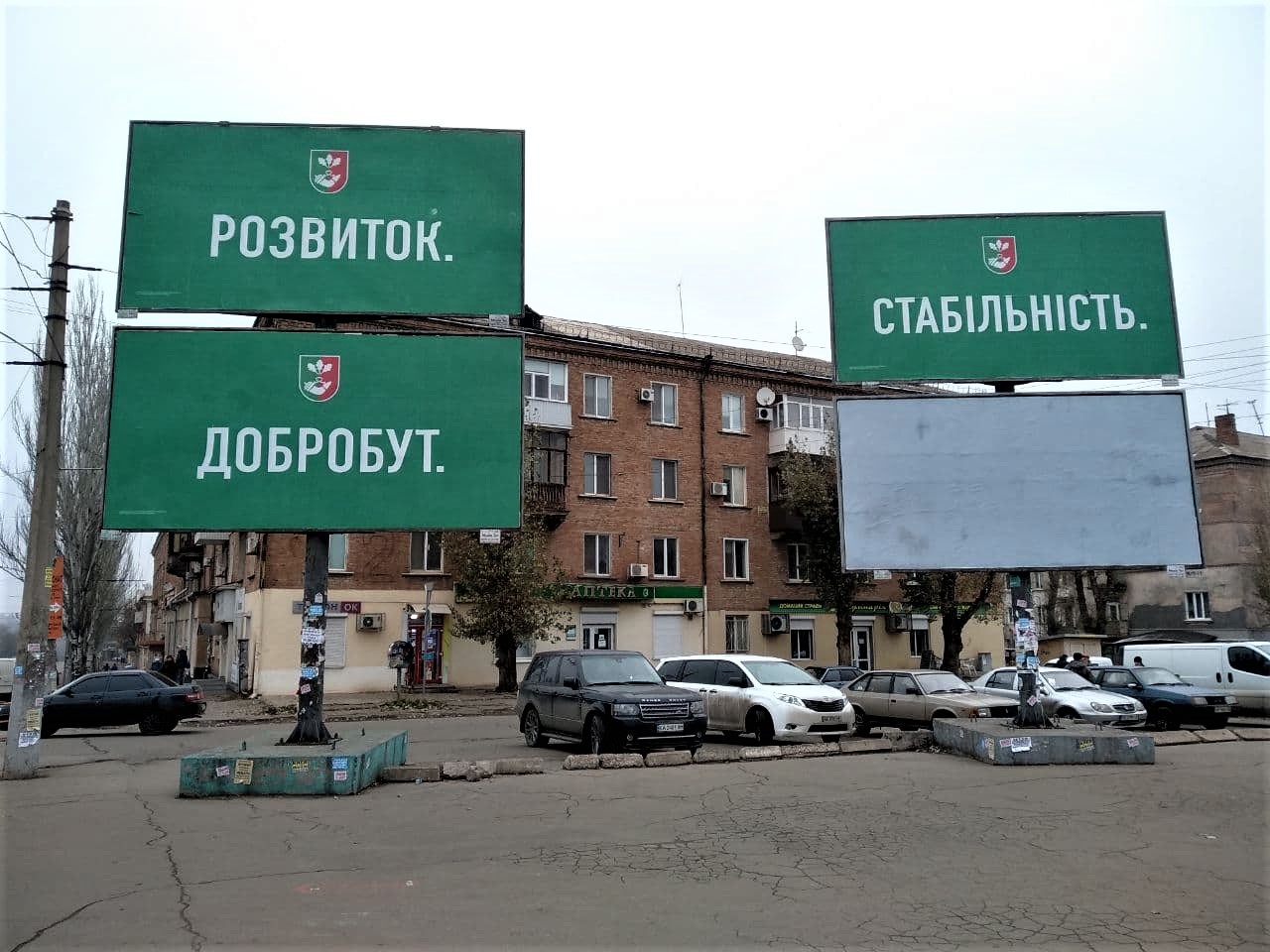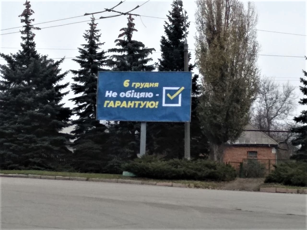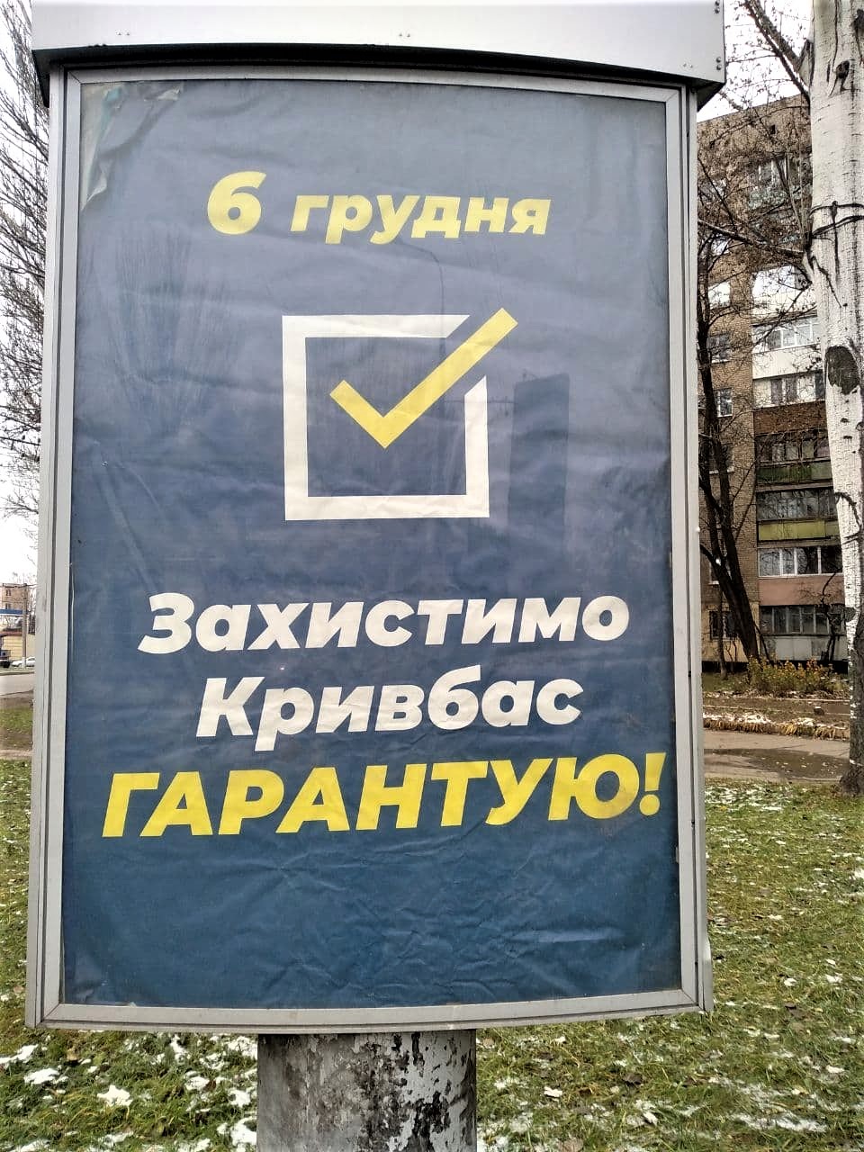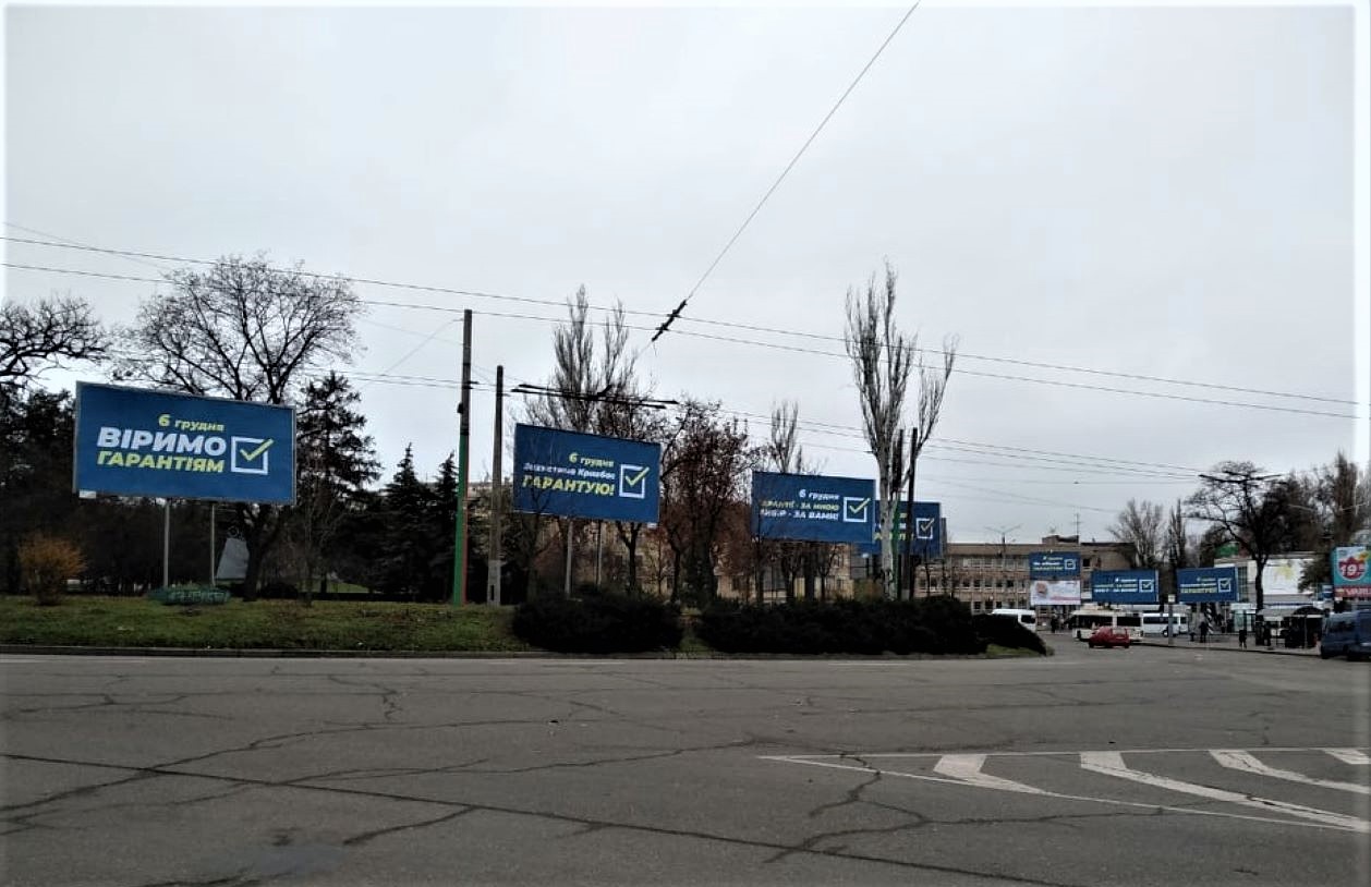 У Кривому Розі в «день тиші» 5 грудня спостерігачі ОПОРИ фіксували білборди з гаслами, що спонукають проголосувати та виконані в стилістиці обох кандидатів на посаду міського голови.