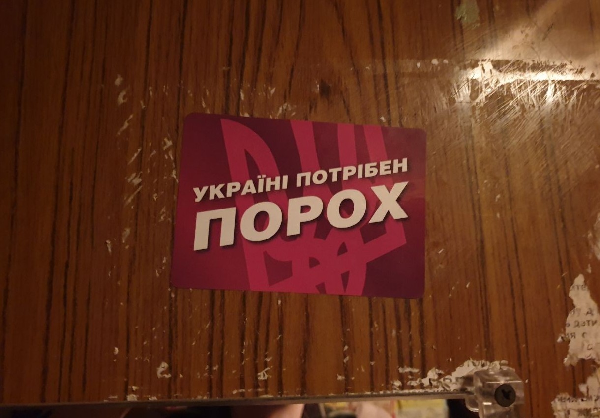 6 квітня в громадському ліфті запорізького житлового будинку №55 на вулиці Поштовій зафіксована наліпка із текстом «Україні потрібен ПОРОХ» із кольоровою гамою та стилістикою шрифтів, що напередодні першого туру використовувалися в оформленні білбордів.