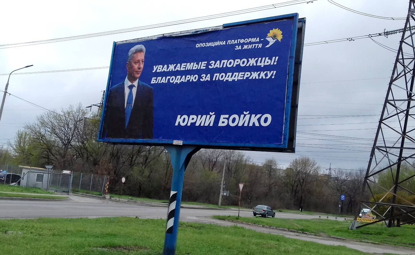 16 квітня у Шевченківському районі Запоріжжя помічений білборд Юрія Бойка зі словами подяки до своїх виборців.