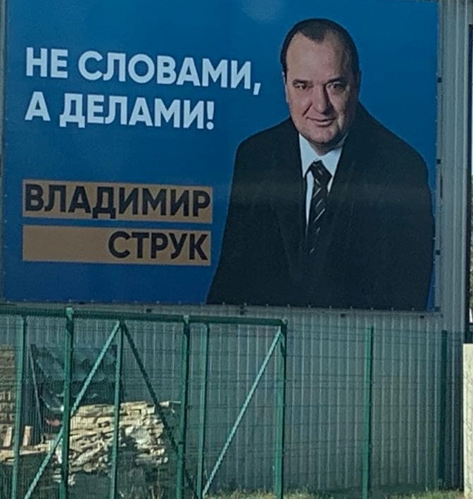 Поряд із цим, у Кремінній спостерігачка ОПОРИ зафіксувала білборди кандидата на посаду міського голови Володимира Струка російською мовою. На банерах міститься фото кандидата та надпис: «Не словами, а делами. Владимир Струк». Зміст тексту дозволяє розглядати білборд як можливу передвиборчу агітацію. У зв’язку із цим можуть бути наявні ознаки порушення ч. 4 ст. 18 Закону України «Про забезпечення функціонування української мови як державної», – матеріали передвиборної агітації, що транслюються на телебаченні, радіо, розміщуються на носіях зовнішньої реклами, поширюються у вигляді листівок і газет або в мережі Інтернет, виконуються державною мовою.
