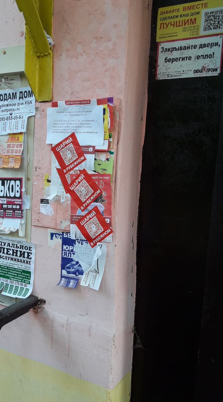 Спостерігачка ОПОРИ у Рубіжному також зафіксувала розміщення друкованих матеріалів (листівки) без вихідних даних та російською мовою на під’їзді будинку. Листівка містить напис«Шарий в Рубежном», оформлений з використанням назви/символіки//розпізнавального знака/передвиборних слоганів/ «Партія Шарія», що містить ознаки здійснення передвиборної агітації на користь організації політичної партії «Партія Шарія».