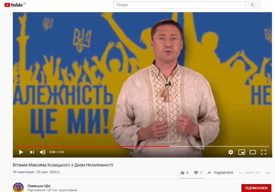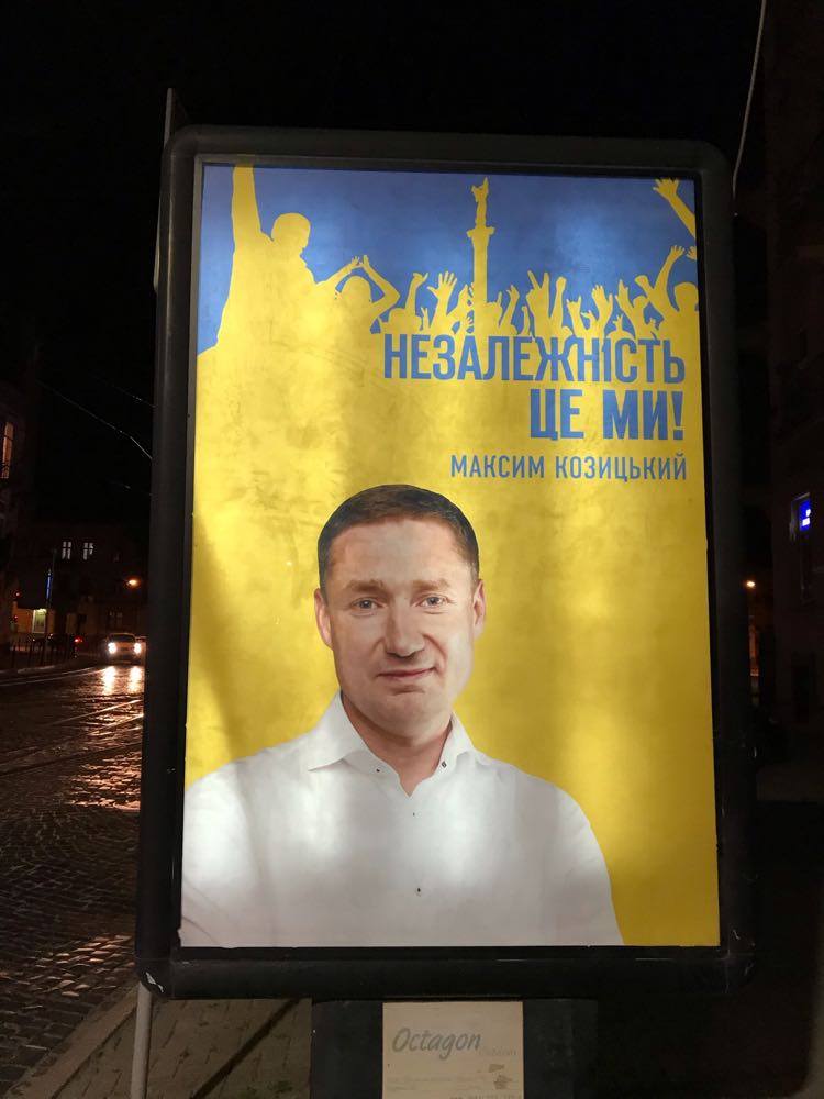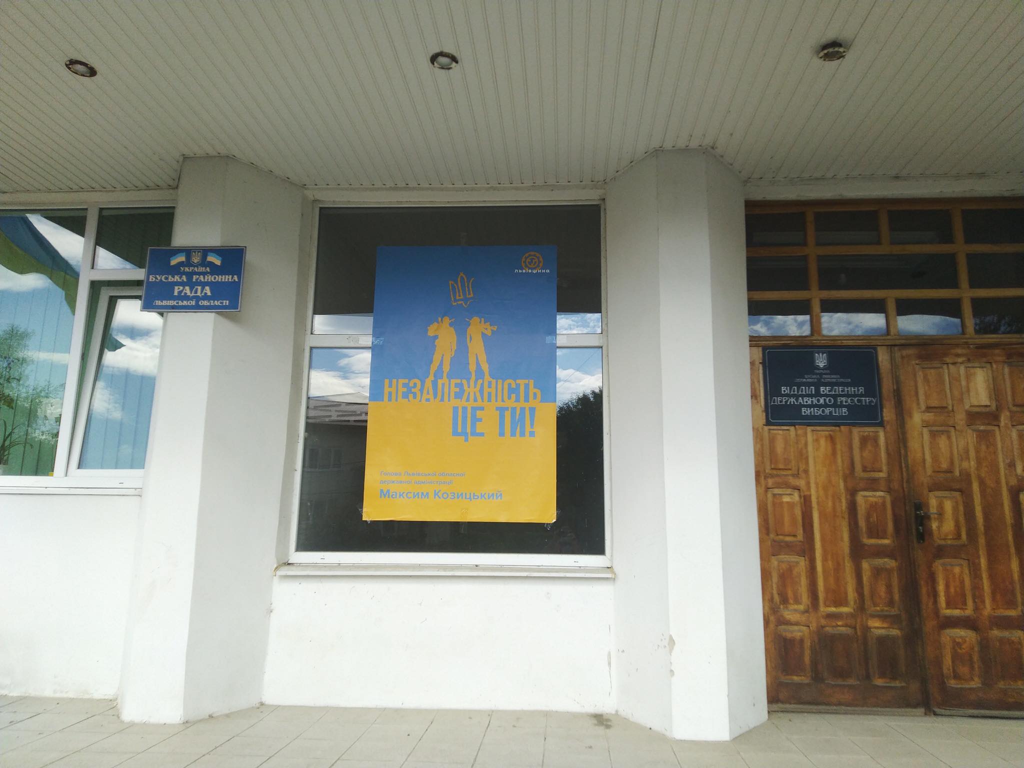 «Незалежність це Ти!» - плакати із таким гаслом напередодні Дня Державного Прапора та Дня Незалежності спостерігачі ОПОРИ зафіксували у Золочівському, Самбірському, Яворівському та Львівському районах. Їх повісили на будівлях Буської, Самбірської, Перемишлянської районних державних адміністрацій, Буської районної ради, районних народних домів у містах Буськ та Кам'янка-Бузька. Хоча зображення на них різні, але всі плакати у блакитно-жовтих кольорах з текстом «Максим Козицький, голова Львівської обласної державної адміністрації». Найімовірніше, замовником цієї зовнішньої реклами була обласна адміністрація, оскільки на плакатах можна помітити промоційний логотип Львівщини.