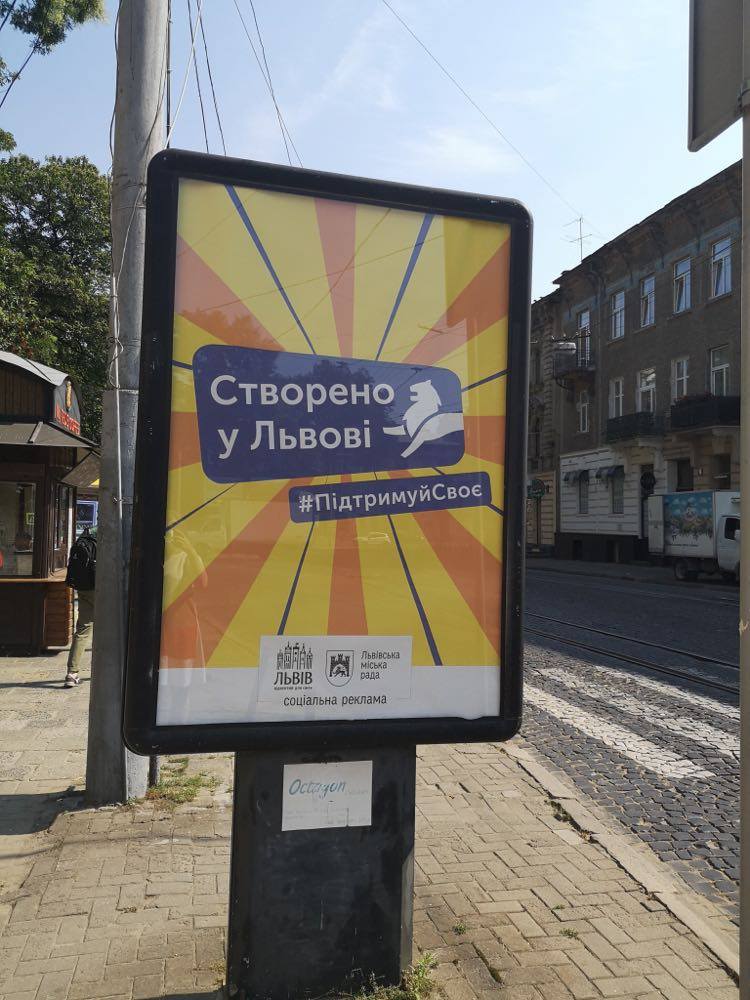 Ці заклики партії перегукуються із соціальною рекламою Львівської міської ради, де на сітілайтах та білбордах текст «Створено у Львові #ПідтримуйСвоє».