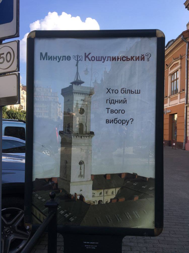 «Минуле чи Кошулинський? Хто більш гідний Твого вибору?», - з таким текстом на білбордах розпочав рекламну кампанію депутат Львівської обласної ради від ВО «Свобода», віцеспікер Верховної Ради України (2012-2014 роки) Руслан Кошулинський.
