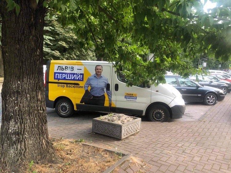 Рекламну кампанію на зовнішніх носіях із гаслами «Безкоштовний транспорт – це реально!» (листопад 2019 року), «Ігор Васюник. Автор закону про електронний квиток» (лютий 2020 року), «Ігор Васюник. Зроблю для львів'ян», «Львів - Перший» (липень 2020 року) розпочав Ігор Васюник. Не лише на білбордах, але й автомобілях, спостерігачі ОПОРИ зафіксували таку рекламу. Ігор Васюник був народним депутатом сьомого та восьмого скликань Верховної Ради України.