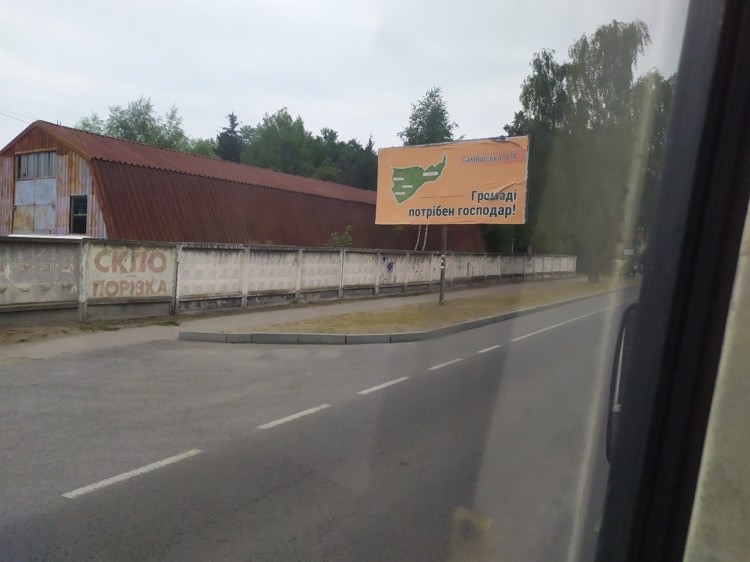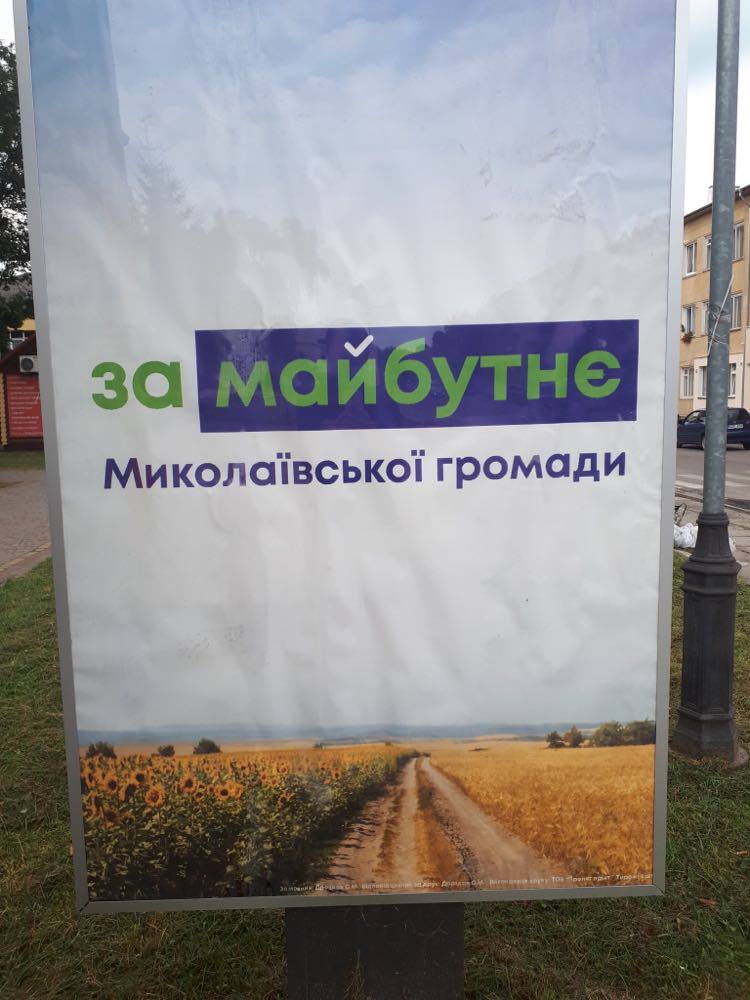 Також спостерігачі ОПОРИ зафіксували три білборди, на помаранчевому фоні є карта Стрийської ОТГ та надпис «Громаді потрібен господар!»