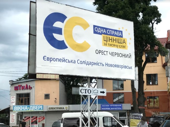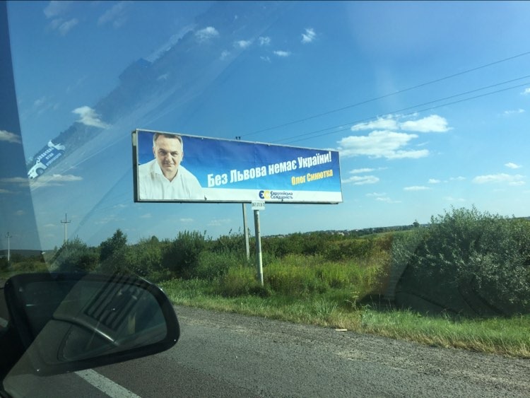 «Без Львова немає України» - білборди з таким гаслом, логотипом «Європейської Солідарності» та зображенням Олега Синютки є у Львові та на околицях міста. Синютка - чинний народний депутат від цієї ж політичної сили. А з грудня 2014 року по червень 2019-го, Олег Синютка був головою Львівської обласної державної адміністрації.