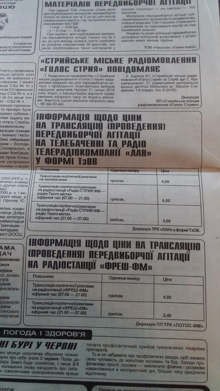 Щоправда є медіа на Львівщині, які досі не оприлюднили цін на рекламу у виборчий період.