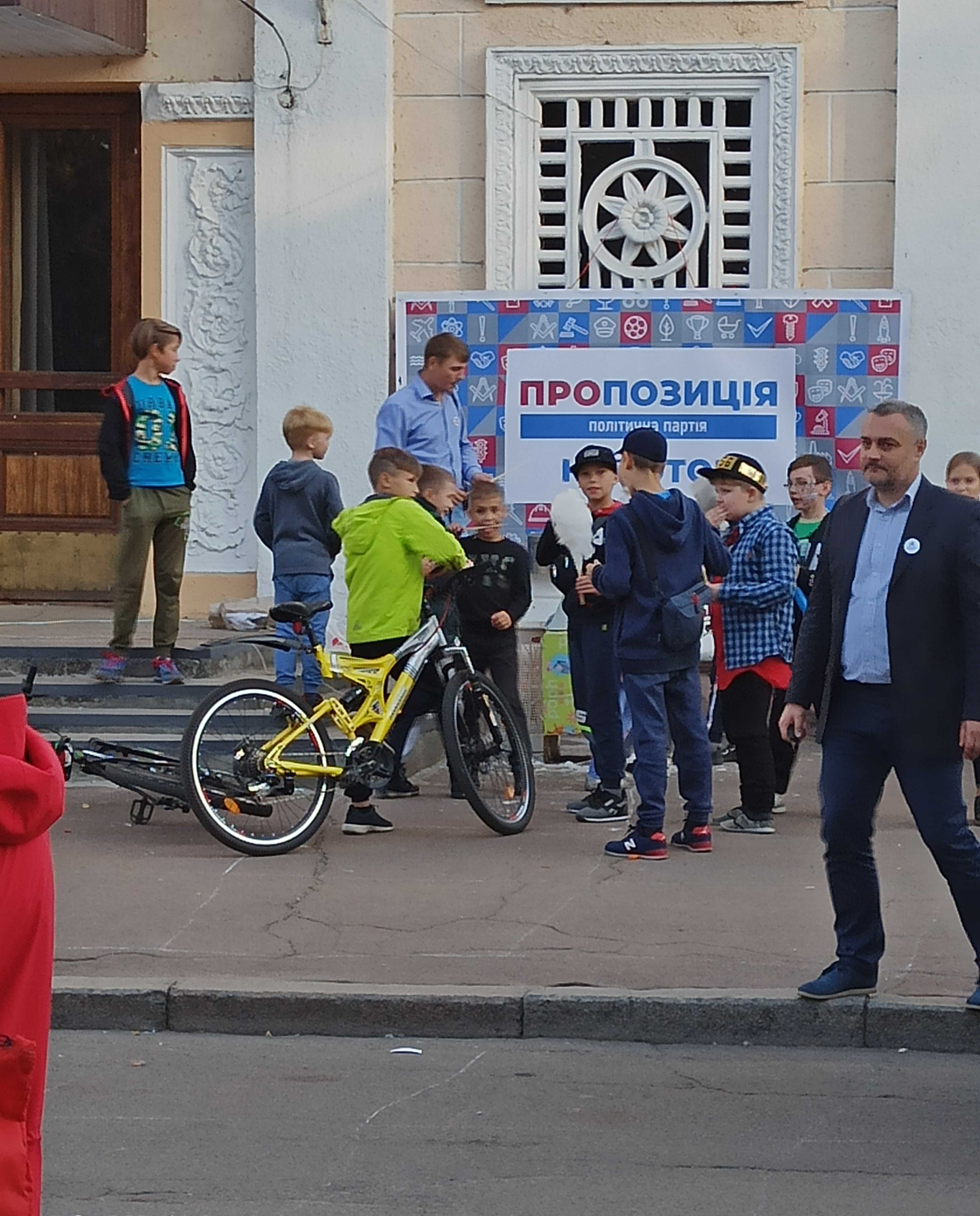 Також спостерігачі ОПОРИ зафіксували, як представники цієї ж політичної сили пригощали в Конотопі дітей солодкою ватою поблизу партійного банера.