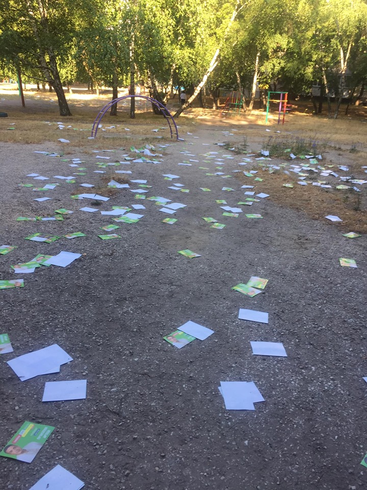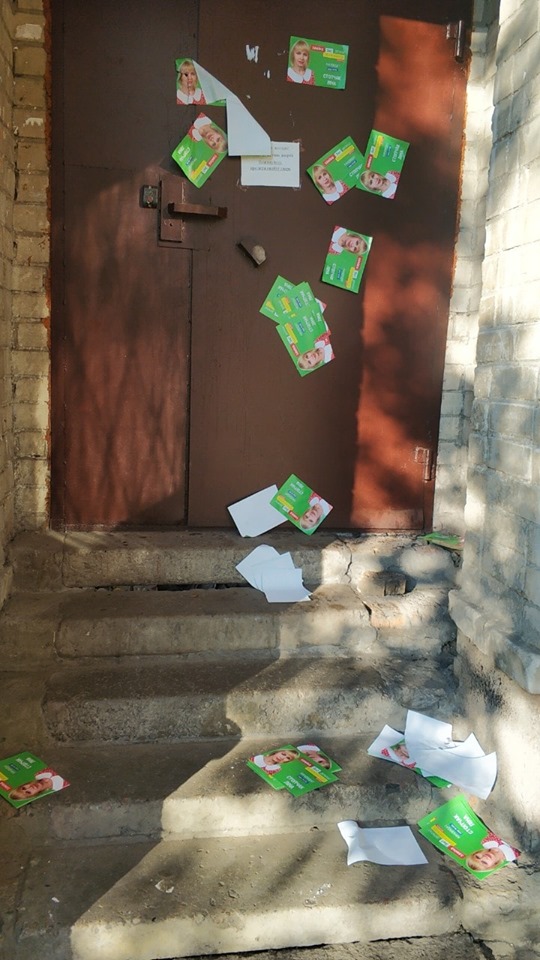 Зокрема, такі агітаційні листівки із зображеннями кандидатів Артема Прокопова, Ліни Стопчак та Олександра Цурана були виявлені спостерігачами ОПОРИ у Південно-Західному районі Черкас та в Чигирині.