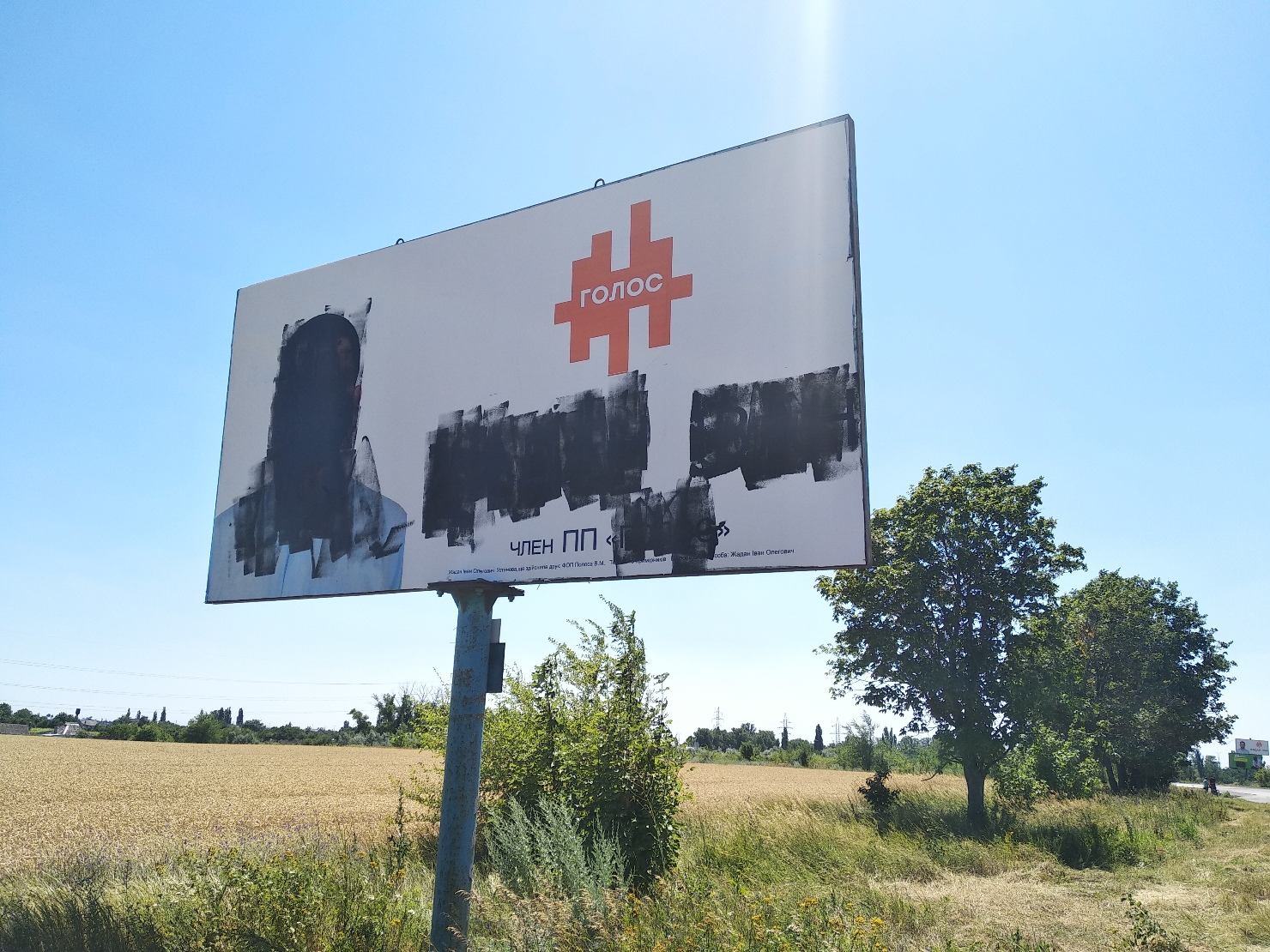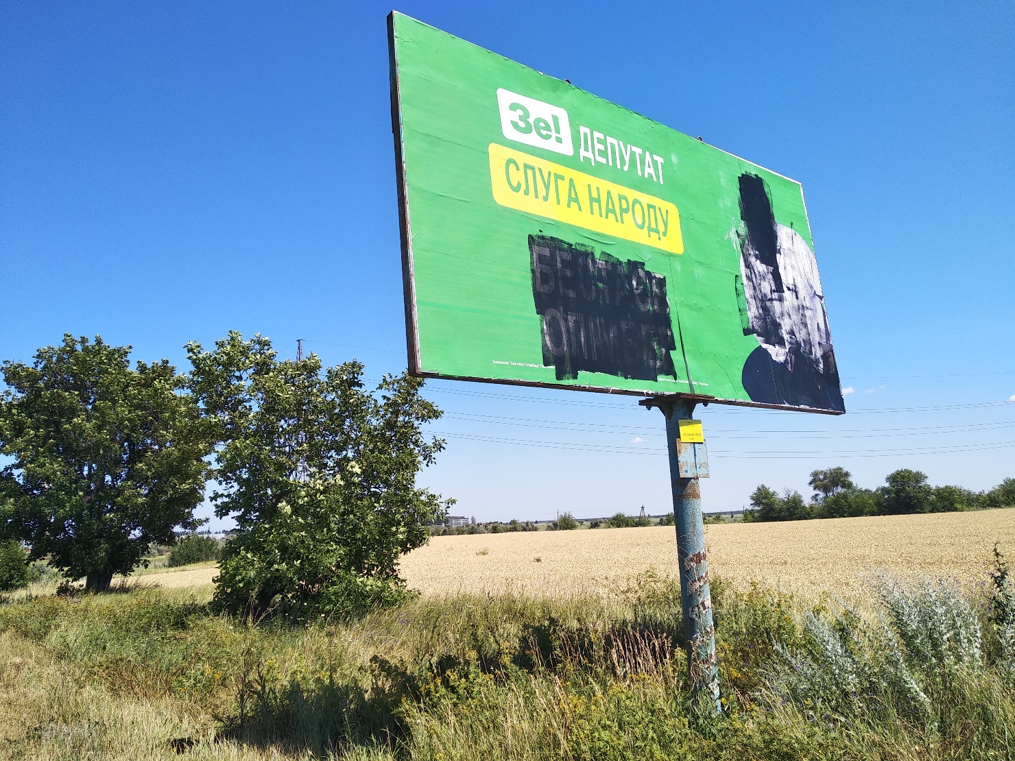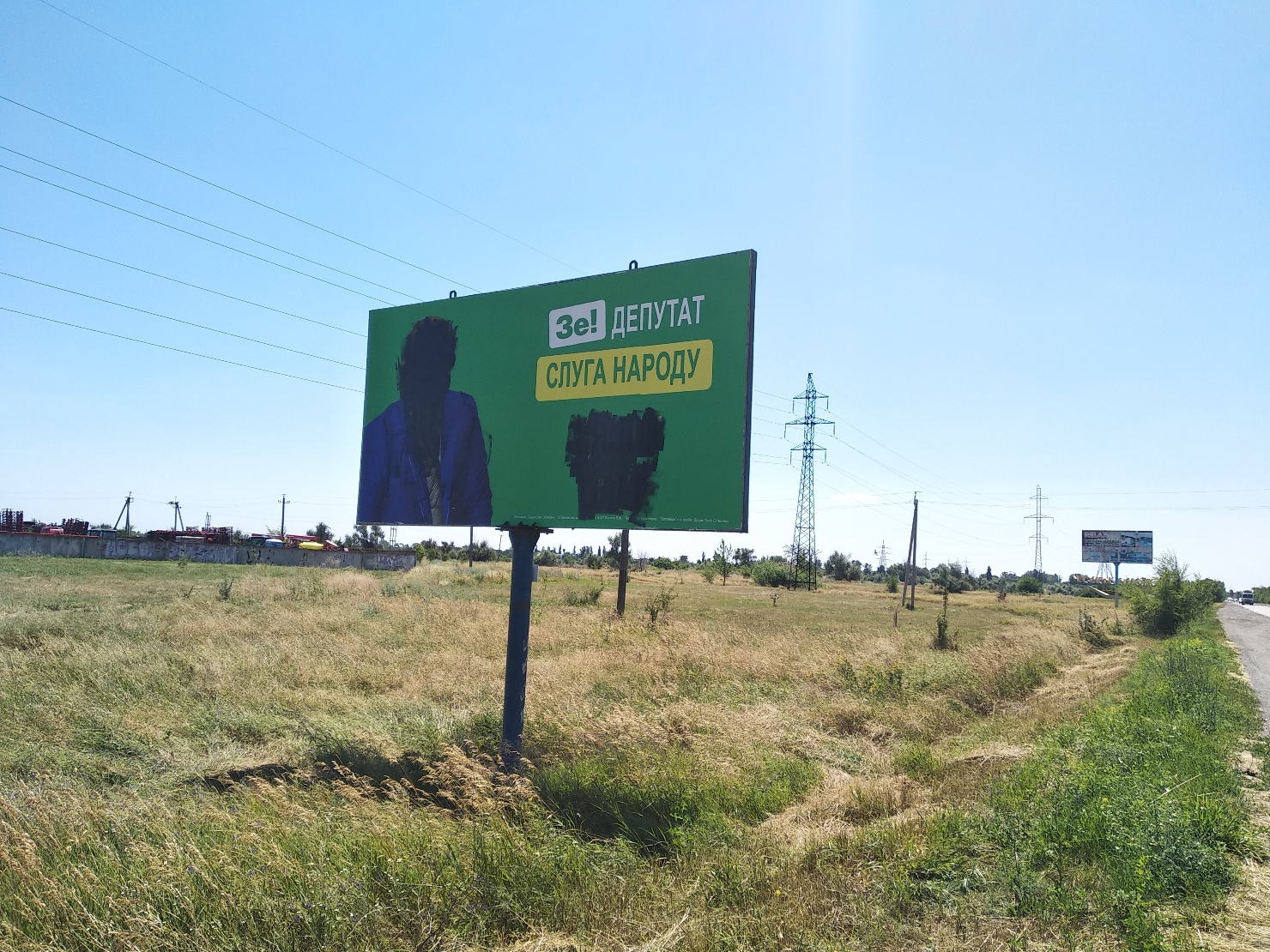 5 липня на виїзді з міста Новомосковськ спостерігачі ОПОРИ зафіксували пошкоджені білборди кандидатів у народні депутати України Олімберга Бестаєва, Олега Дядика та Івана Жадана.
