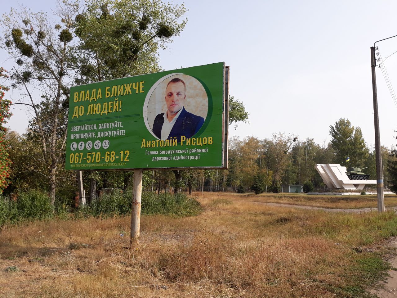 Крім того, 1 жовтня спостерігач ОПОРИ у Богодухові зафіксував банери без вихідних даних кандидата на голову Богодухівської міської ради від політичної партії "Слуга народу" Анатолія Рисцова – чинного голови районної державної адміністрації, який зображений на даних плакатах. У зв'язку з цим, до Богодухівського РВ ГУНП України було подано заяву (повідомлення) щодо порушення порядку розміщення агітаційних матеріалів.
