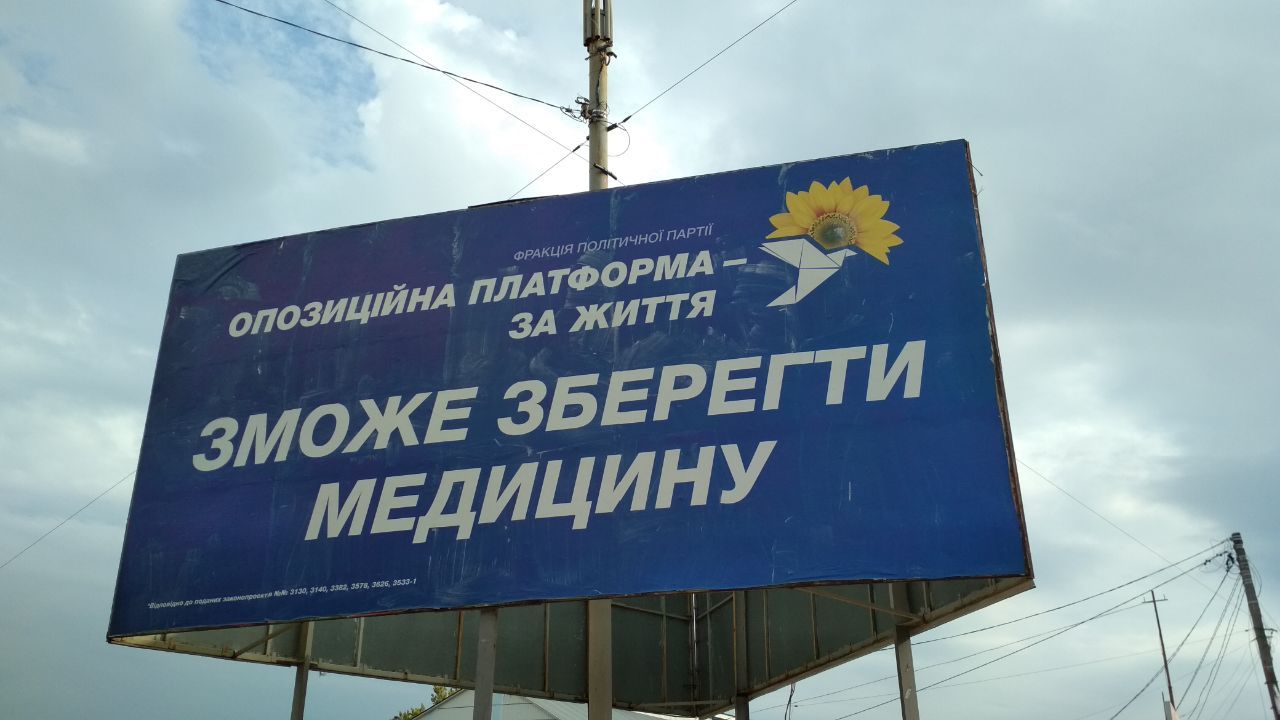 Без вихідних даних був зафіксований банер партії “Опозиційна платформа - За Життя” з лозунгом “Зможе зберегти медицину”.