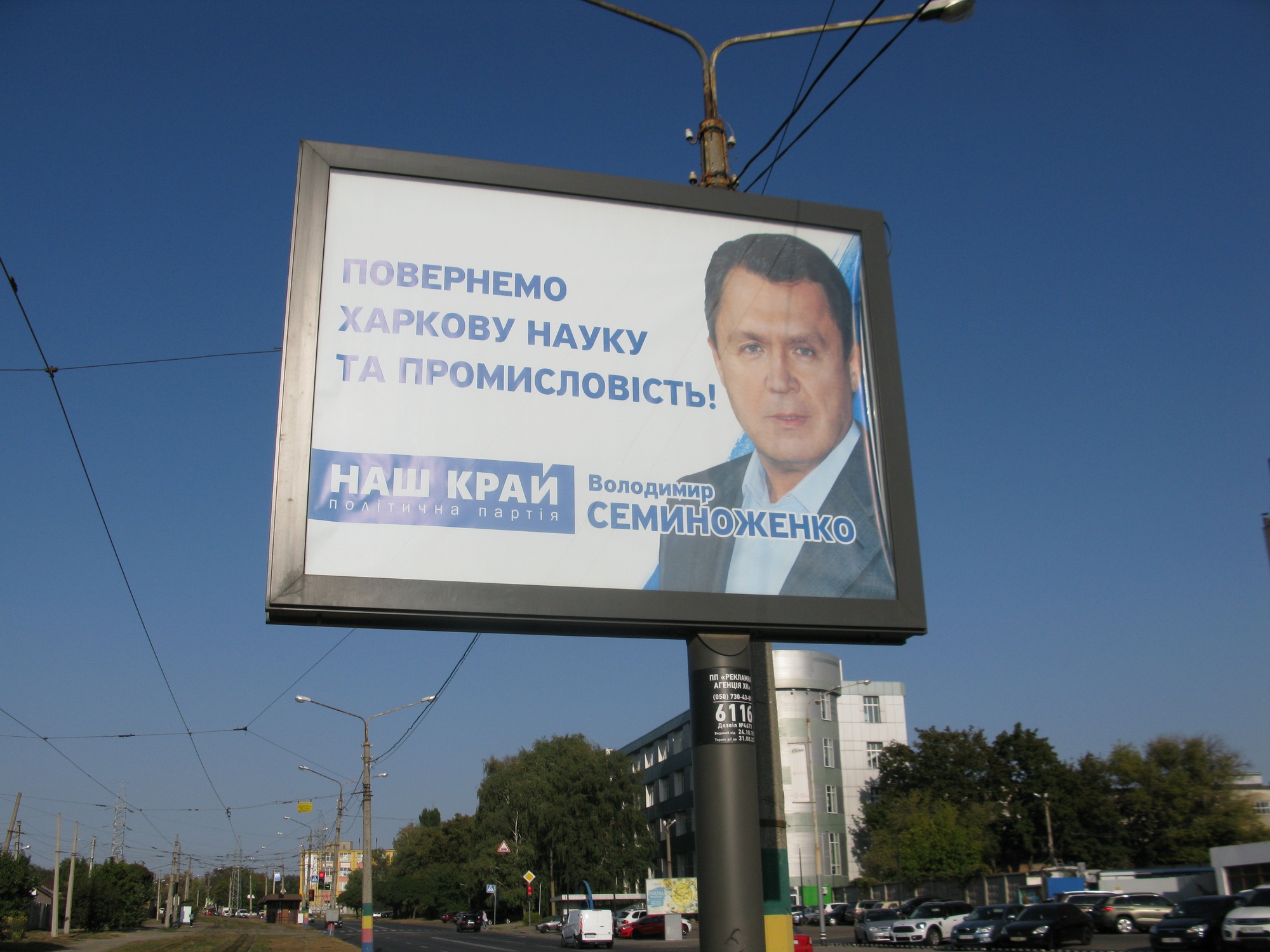 В той ж день він також зафіксував білборди з написами «Повернемо Харкову науку та промисловість. Володимир Семиноженко», якого було висунуто на конференції місцевого партійного осередку партії «Наш Край».