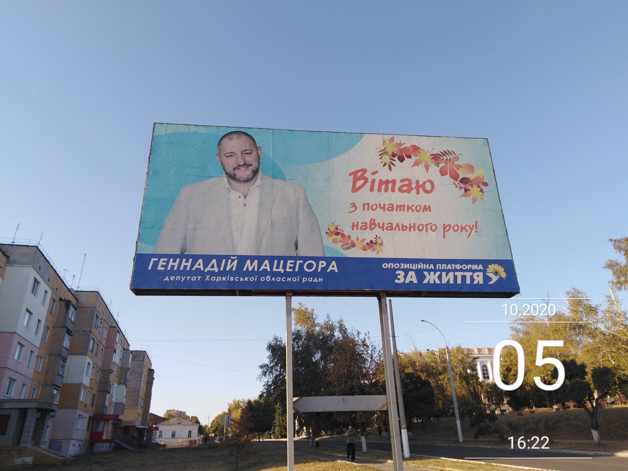 Крім цього, банер був розміщений на будівлі, де знаходиться приміщення автостанції, що суперечить частині 17 статті 57 Виборчого кодексу. Таке ж саме порушення виявили на трьох бордах ще одного кандидата на посаду на посаду Куп`янського міського голови від місцевого осередку партії “Опозиційна платформа - За Життя” Геннадія Мацегори. 6 жовтня заяви були подані до Куп`янського ВП ГУНП в Харківській області.