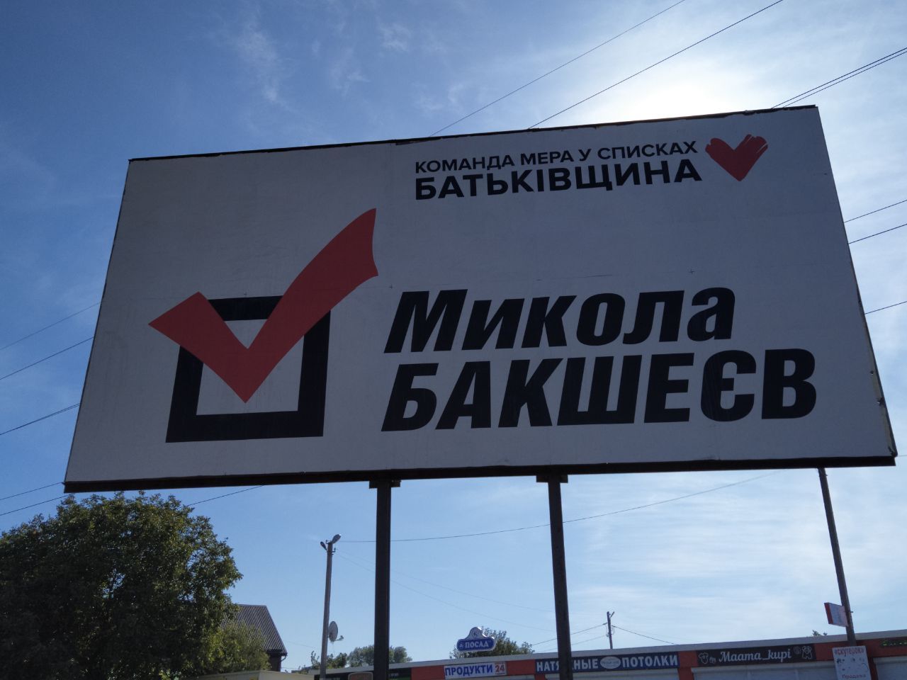 У Первомайському спостерігач ОПОРИ виявив білборди чинного міського голови та кандидата на посаду міського голови Миколи Бакшеєва без вихідних даних. На портах у кольорах партії “ВО “Батьківщина” був лозунг: “Команда мера у списках “Батьківщина. Микола Бакшеєв”. Відповідна заява була подана 8 жовтня до Первомайського ВП ГУНП у Харківській області.