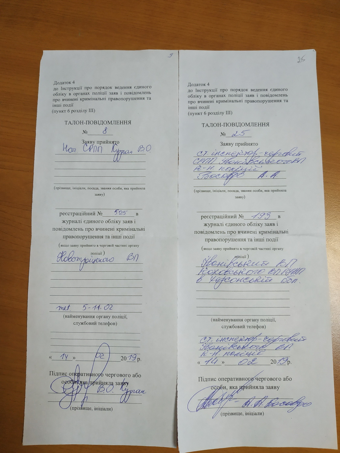 За даними фактами спостерігач ОПОРИ викликав правоохоронців, які склали заяву, що увійшла до журналу єдиного обліку під номером 3940.