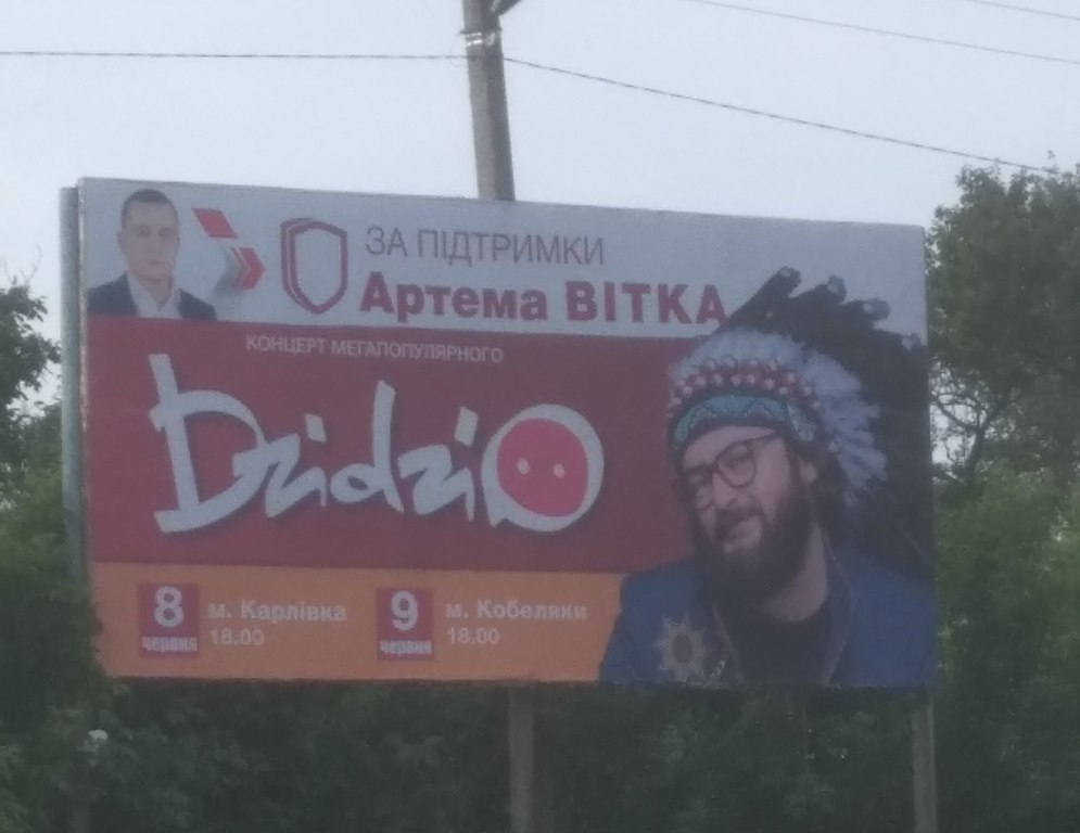 8 червня в Карлівці пройшов захід потенційного кандидата в народні депутати Артема Вітка з ознаками можливої дочасної агітації, на якому відбувся концерт музичного гурту «Дзідзьо».