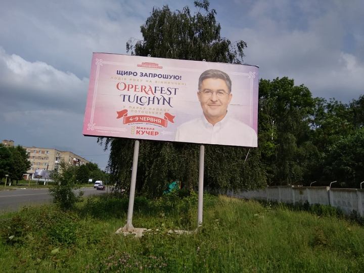 Так, у місті Гайсин (виборчий округ №17) розміщено білборд із фотографією нардепа Миколи Кучера та написом «Щиро запрошую! Подія року на Вінниччині OperaFestTulchyn у парку Палацу Потоцьких. 4-9 червня – дитячі вистави. Микола Кучер».