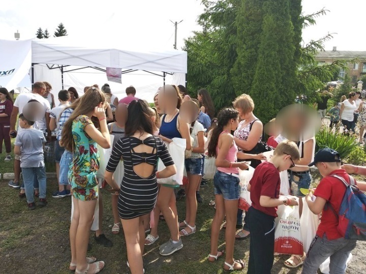 Під час заходу також роздавали дітям пакети з солодощами та соком. На пакеті розміщено напис «OperaFestTulchyn. Лариса Білозір». За словами дітей, пакети вони виграли у вікторині, яка передувала OperaFestTulchyn.