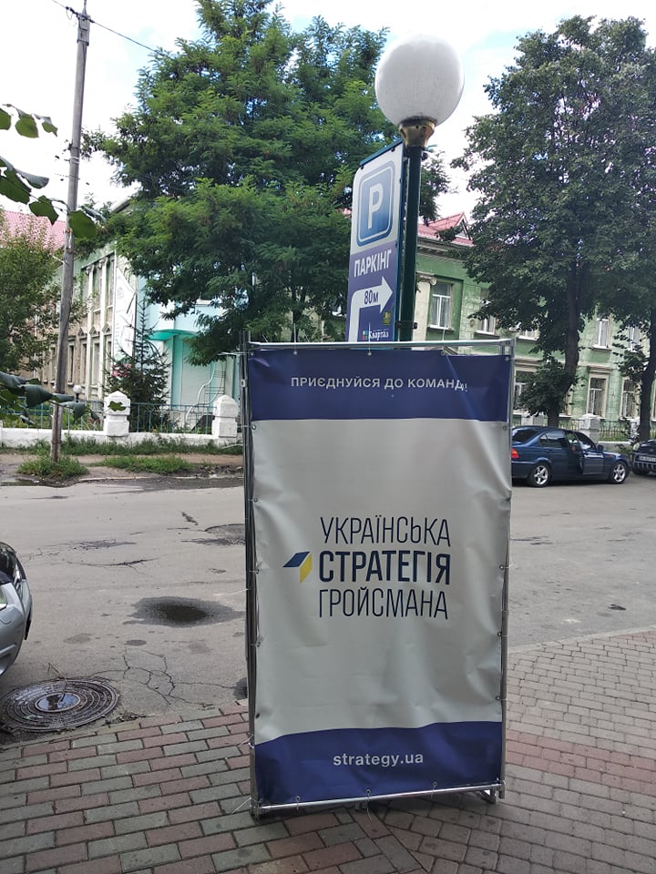Також у Вінниці що на перехресті вулиць Гладкова і Волошкова розміщено банер політичної партії «Українська стратегія Гройсмана» на огорожі спортивного майданчика.
