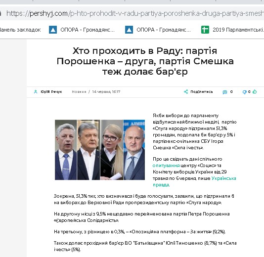 14 червня на шпальтах ІА «Конкурент» вийшов матеріал «Які партії проходять до Верховної Ради: з'явився новий рейтинг», в якому не зазначено лише точного формулювання питання. Аналогічна новина того ж дня з’явилася на сайті «Перший канал соціальних новин» під заголовком «Хто проходить в раду: партія Порошенка - друга, партія Смєшка теж долає бар’єр».