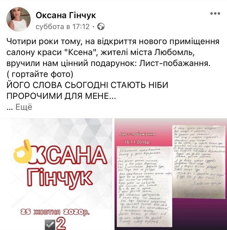 У місті Любомль виявили білборд без вихідних даних із агітацією за кандидатку на посаду міського голови Оксану Гічук (самовисування). Агітація містила фото кандидатки, її ім’я, а також гасло «Зміни починаються з тебе!». До слова, згодом спостерігач виявив на низці електроопор листівки із надписом «Наступним мером має бути жінка!» із логотипом, який Оксана Гінчук використовувала у матеріалах, розміщених на її сторінці у соцмережі Фейсбук.