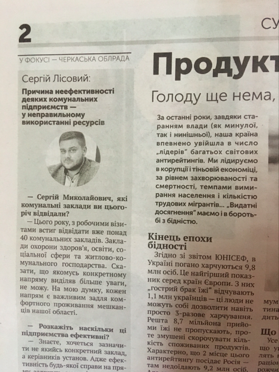 Депутат Черкаської обласної ради від партії “Слуга народу”, заступник голови ради Сергій Лісовий в означений період не був помічений за публічними активностями, які були б спрямовані безпосередньо на округ і мали агітаційний характер. На окрузі досі наявна його зовнішня реклама, також у газеті “7 днів” від 28 липня розміщена стаття з ознаками джинси з міркуваннями Лісового про ефективність комунальних підприємств області.
