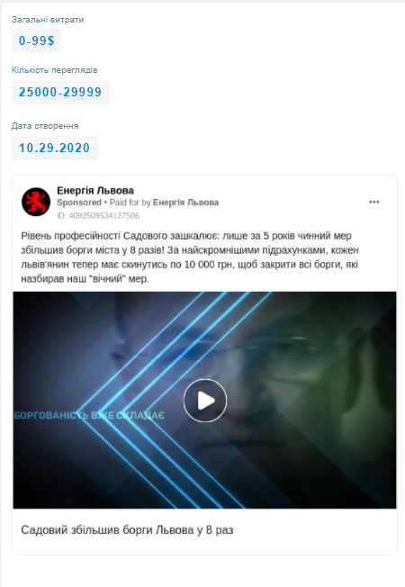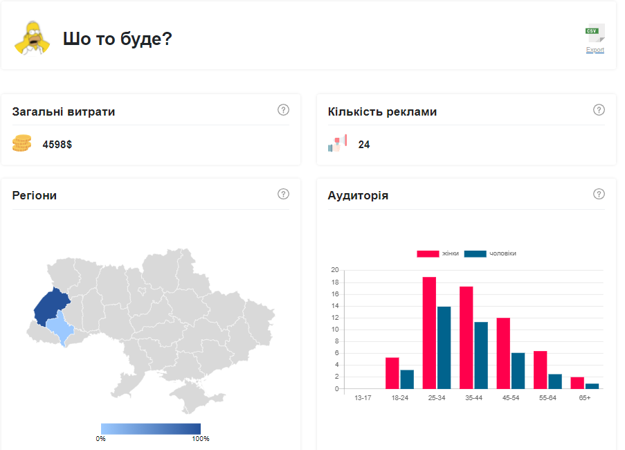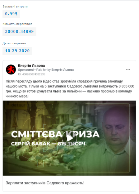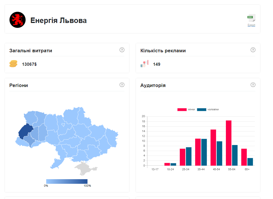 Усі повідомлення поширювалися як платна політична реклама та орієнтувалася перш за все на жіночу аудиторію Facebook віком від 45 до 64 років. Враховуючи анонімність сторінки складно встановити, хто саме причетний до поширення цього контенту. Проте враховуючи ту обставину, що цей контент поширювався лише у період між двома турами голосування, а об’єктом їхньої критики був лише Андрій Садовий, то можна припустити, що вигодонабувачем є його основний конкурент.