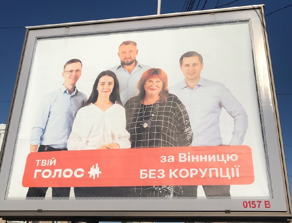 Також спостерігачі ОПОРИ повідомляють про наявність зовнішньої політичної реклами партії «Голос» із написом: «Твій голос за Вінницю без корупції».
