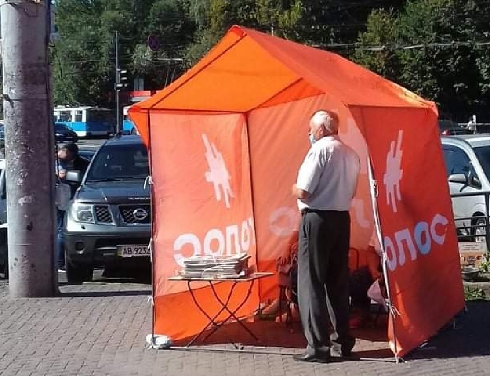 Також у Вінниці зафіксовано поширення газет та листівок і поодинокі випадки розміщення партійних наметів. Так, зокрема, намети політичної партії «Голос» розміщувалися біля ринку «Урожай», в них розповсюджували газети.