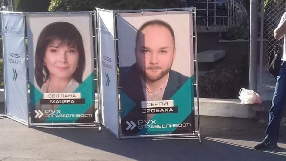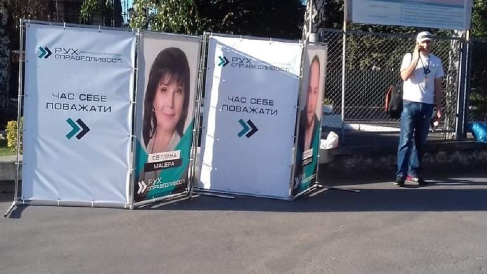 Так, у Вінниці зафіксовано металеві конструкції з банерами, на яких зображено представників громадської організації «Рух справедливості» (вона є однойменною з політичною партію «Рух справедливості») та напис: «Громадська організація. Рух справедливості. Час себе поважати». Біля цих банерів представники організації спілкуються з мешканцями міста та роздають інформаційні листівки.