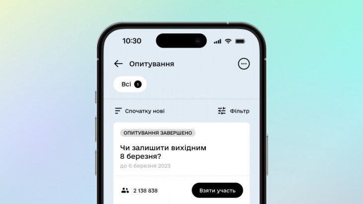 Насправді ж опитування в додатку «Дія» тривало з 28 лютого до 6 березня. В результаті 62% (1,3 млн) опитаних підтримали ідею залишити день 8 березня вихідним, а 33% (700 тис.) погодилися зробити його робочим. Всього в опитуванні взяли участь 2,1 млн користувачів додатку.