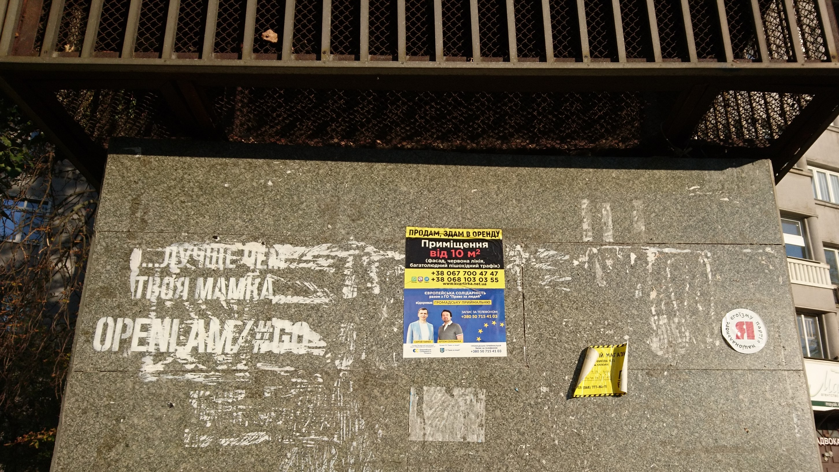 У Правилах благоустрою міста Києва, частині 14.1. підпункту 6, зазначено, що забороняється розміщення оголошень, інформаційно-агітаційних плакатів, рекламних листівок, табличок, наліпок, написів (зображень, розписів, малюнків) тощо на об'єктах та елементах благоустрою, в тому числі на засобах та обладнанні зовнішнього освітлення, опорах контактної мережі, покритті площ, вулиць, доріг, проїздів, алей, бульварів, тротуарів, пішохідних зон і доріжок, зелених насадженнях, стовпах, лавах, вказівниках, парканах, опорних стінах тощо.