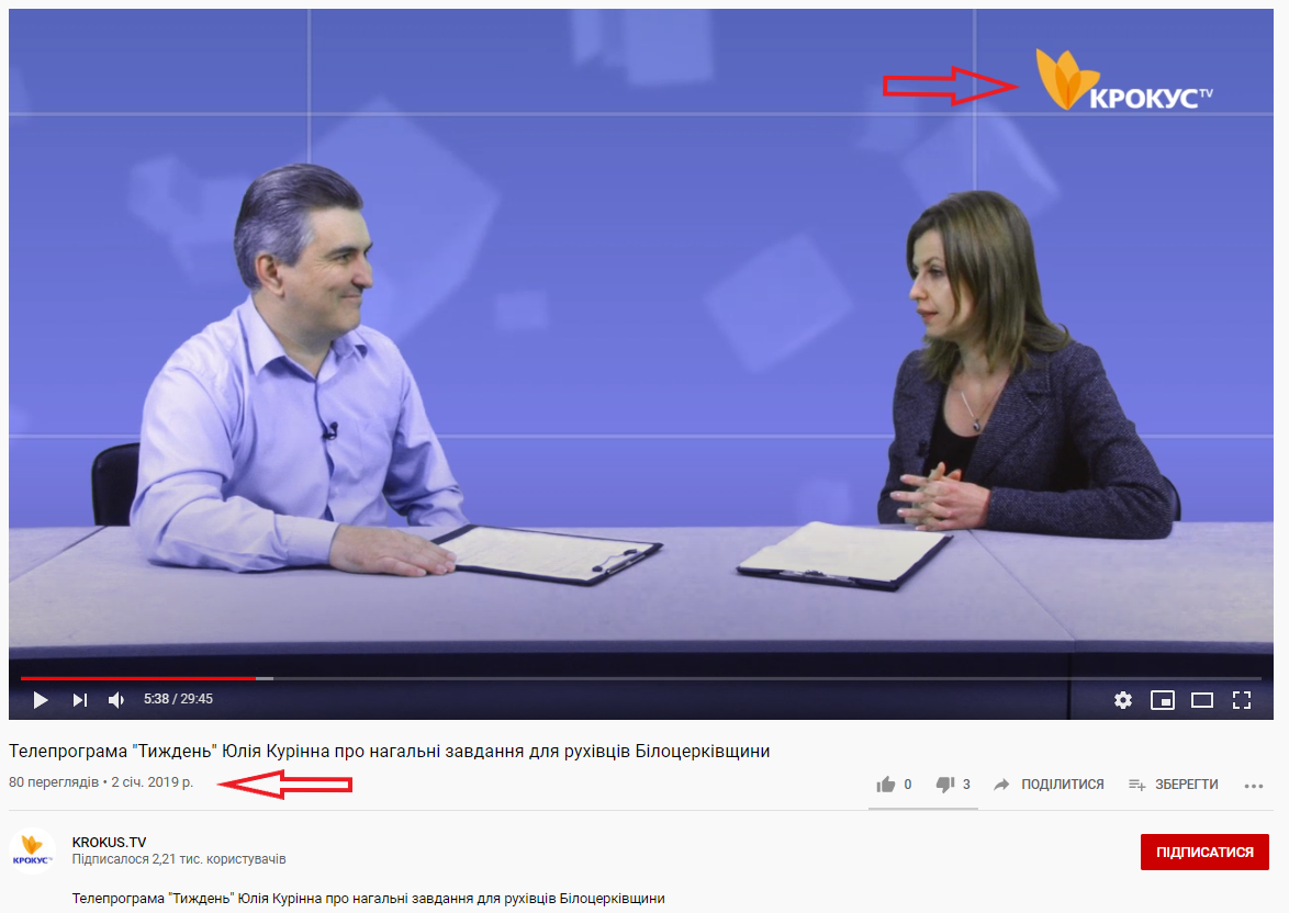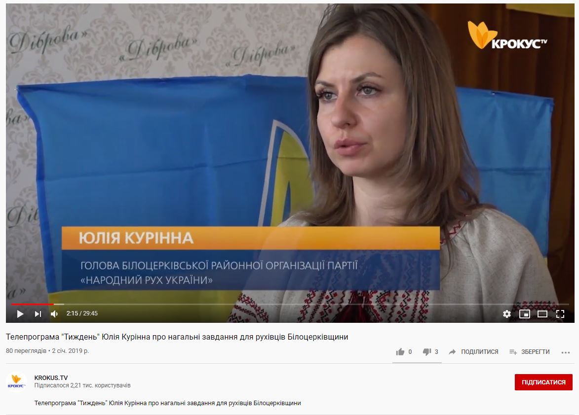 Під час пошуку у мережі Youtube спостерігачі ОПОРИ знайшли інтерв’ю Юлії Курінної в цій же студії, однак марковане воно вже січнем 2019 року. Згідно із повною версією відео, тоді Юлія Курінна була головою Білоцерківської районної організації партії «Народний рух України», а не кандидаткою в депутати міської ради від партії «За майбутнє», як це подавали під час публікації в буцім-то новому інтерв’ю.