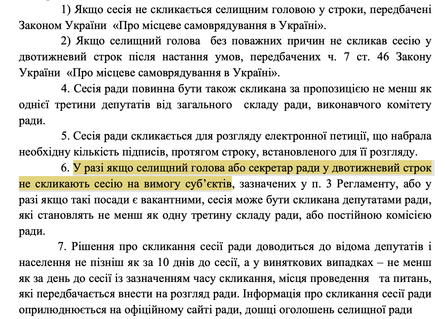 Отже, 5 травня 2023 року 14 депутатів Оратівської селищної ради зібралися на позачергову сесію ради, яка з правового погляду має сумнівну легітимність. Виходячи з регламенту Оратівської селищної ради та Закону України “Про місцеве самоврядування”, така сесія мала би бути скликана у двотижневий строк. Натомість на той час уже було призначено чергову сесію на 18 травня.