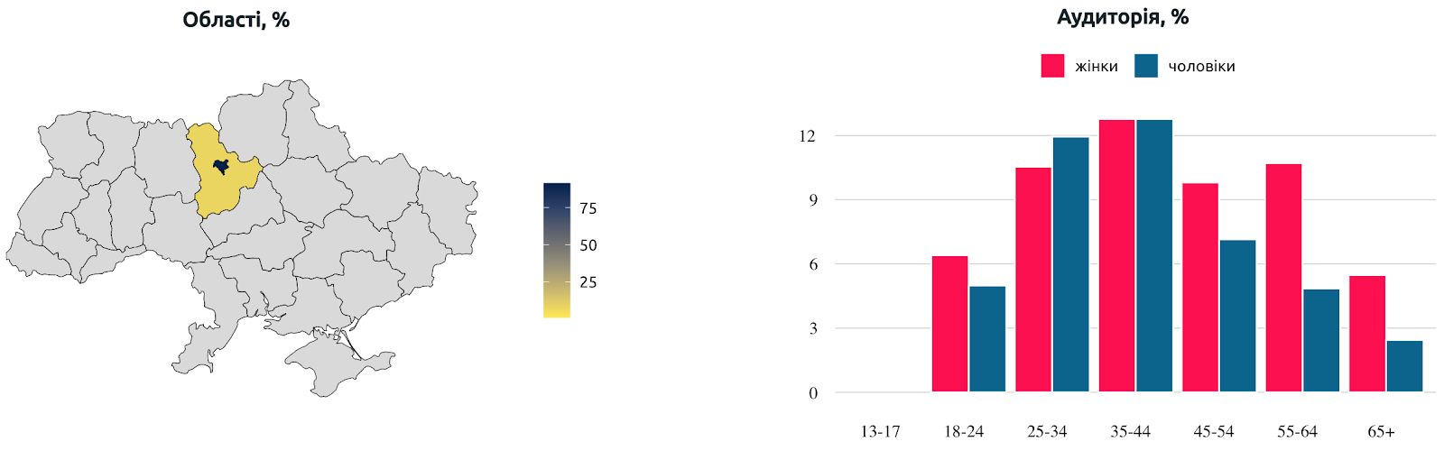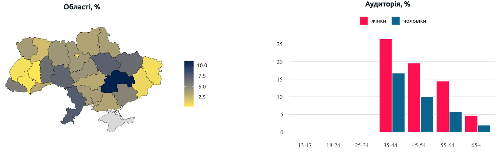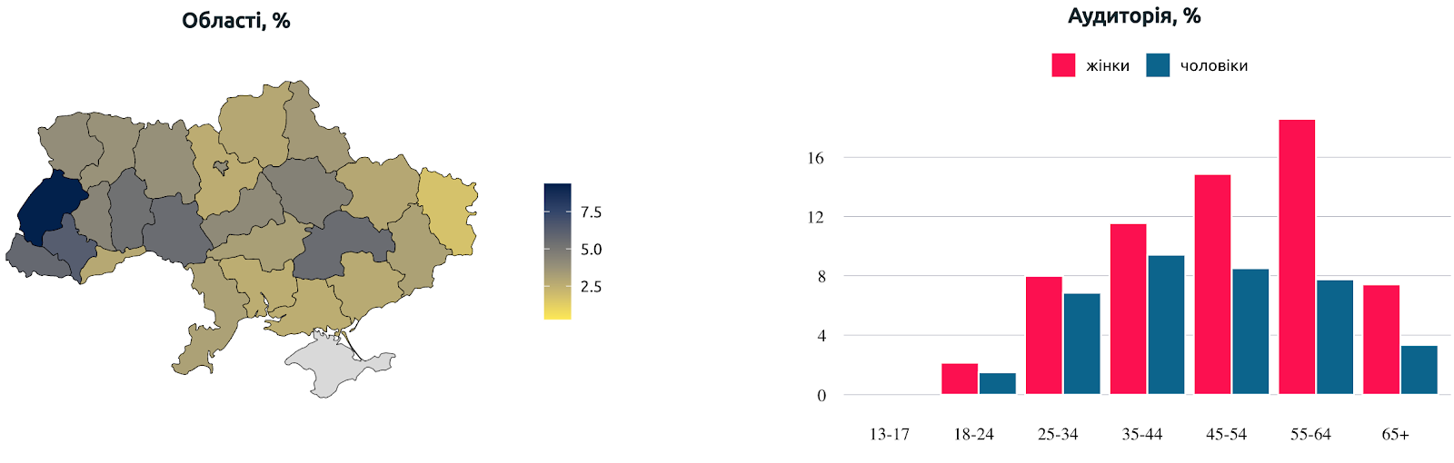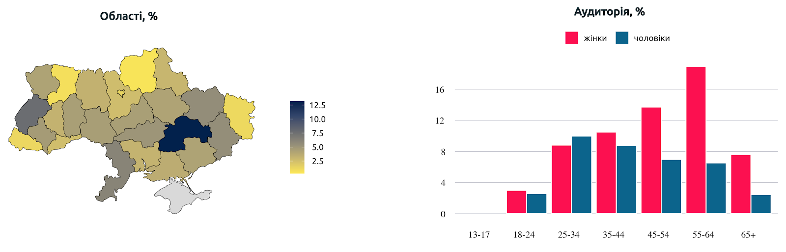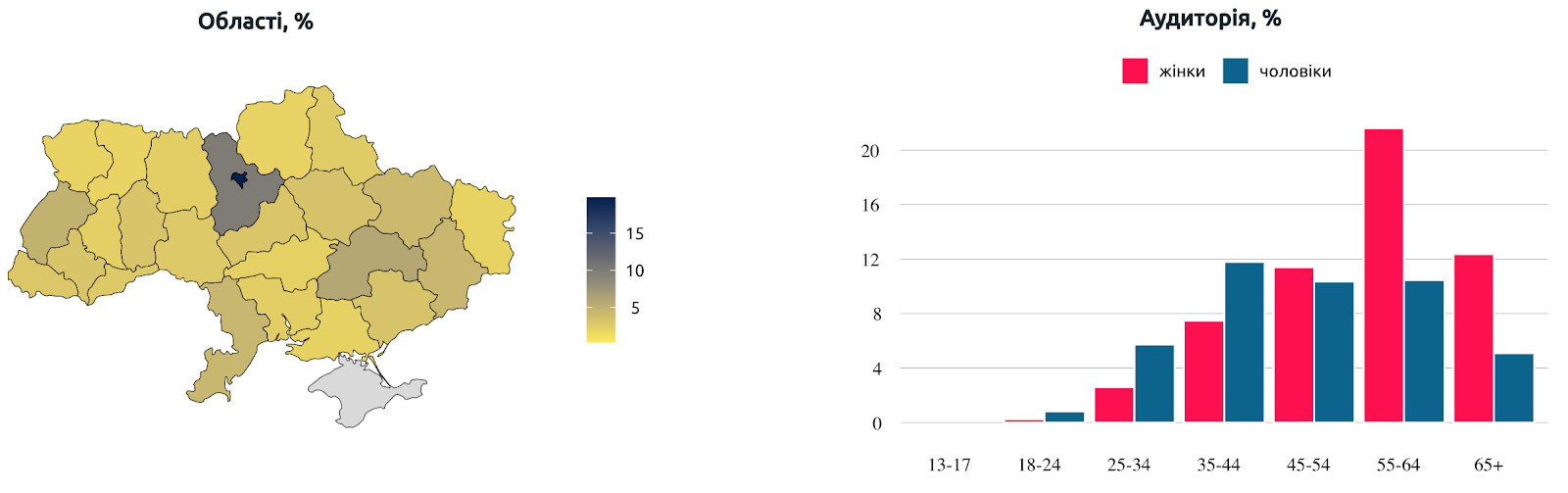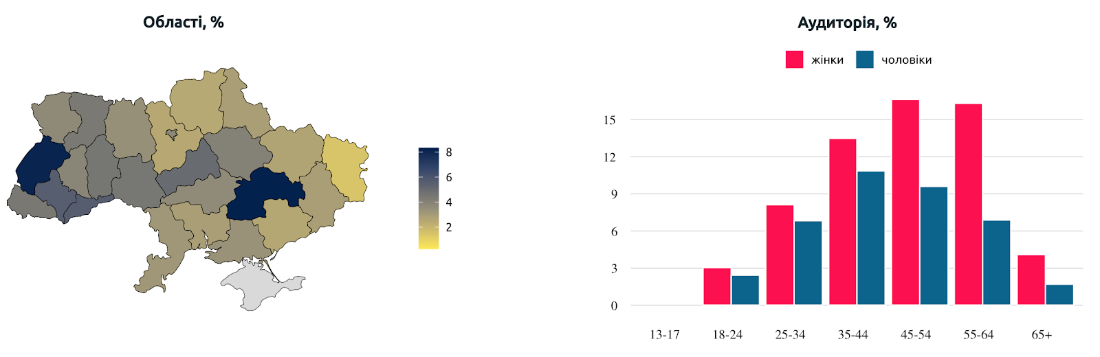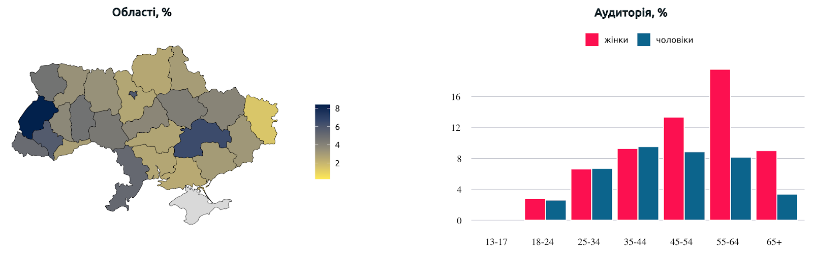 Таргетинг сторінки НАШ КРАЙ у серпні: за географією та аудиторією (джерело: fb.oporaua.org)