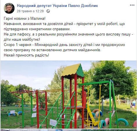 Активізував свою роботу і нардеп-кандидат Павло Дзюблик. На своїй сторінці в мережі Facebook протягом травня-червня він звітував про зустрічі в окрузі, встановлював дитячі та спортивні майданчики, організовував конкурси краси. За кошти субвенції придбав комп'ютер та принтер в дошкільний навчальний заклад. За ініціативи та підтримки нардепа створено музей Коростишівського дитячо - юнацького клубу фізичної підготовки. Також він допомагав у придбанні обладнання та ремонті медичних закладів в окрузі.
