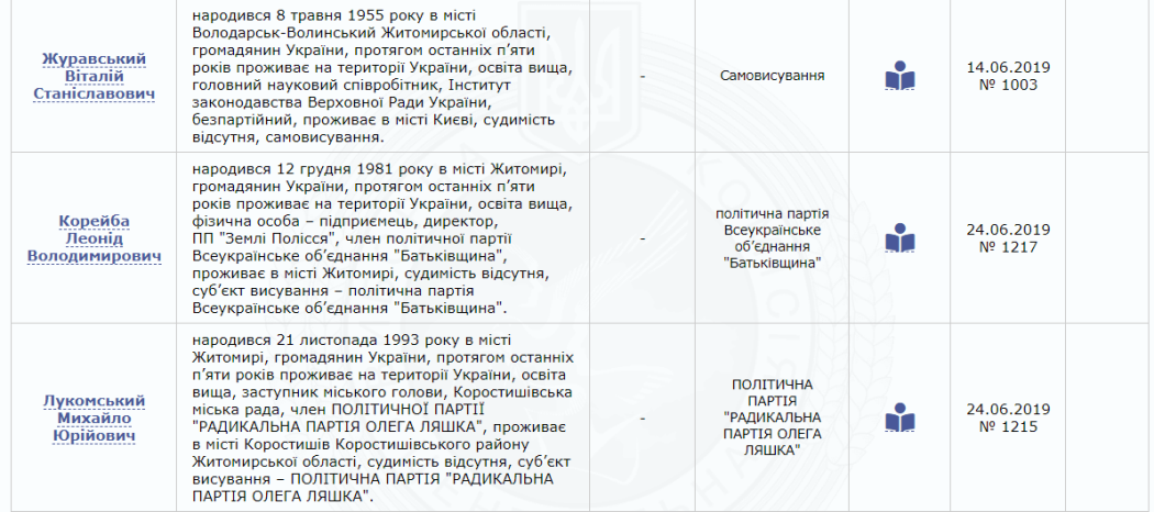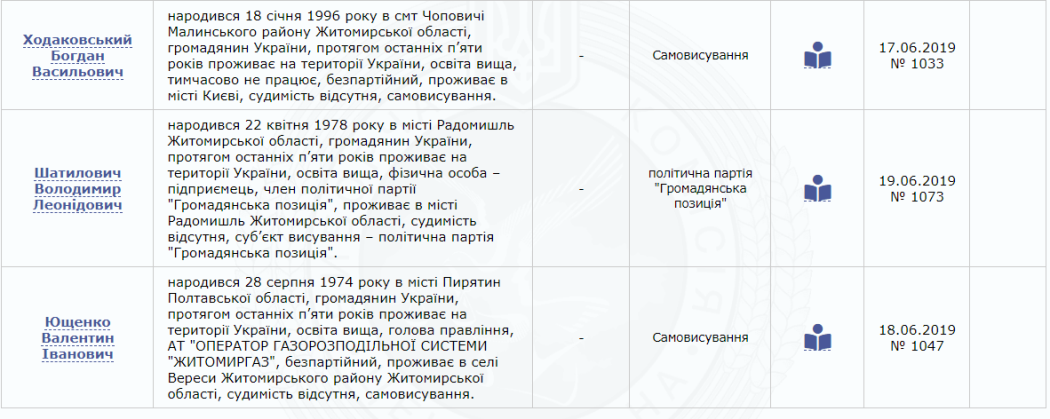 Серед самовисуванців – народний депутат Павло Дзюблик. Колишній нардеп Віталій Журавський, на сайті ЦВК зазначено, що він є головним науковим співробітником Інституту законодавства Верховної Ради України, безпартійний. Є двоє кандидатів із схожими прізвищами: Андрій Білицький, керуючий адвокатським бюро «Адвокат Білицький» та Владислав Білоцький, керуючий партнер адвокатського об’єднання «Берілстоун». Обидва проживають у Києві.