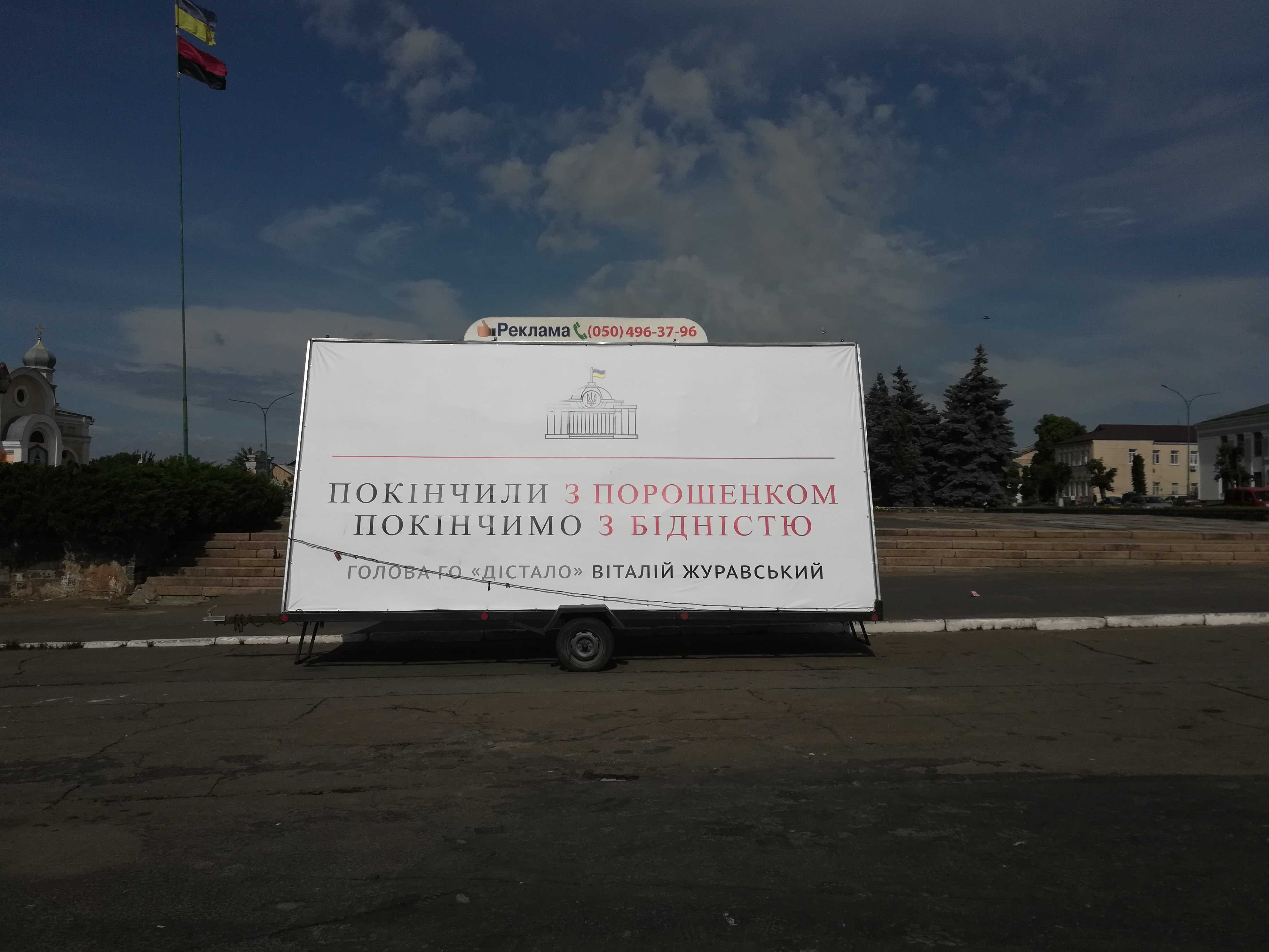 З початком виборчого процесу в окрузі розгорнулась активна агітаційна кампанія декількох кандидатів. До офіційної реєстрації кандидатом у Малині з'явилася друкована продукція Віталія Журавського. Зокрема, плакат з написом: «Покінчили з Порошенком, покінчимо з бідністю. Голова ГО «Дістало» Віталій Журавський». Як повідомляла ОПОРА, представник «Слуги народу» звинувачував Журавського в присвоєнні партійної приналежності.