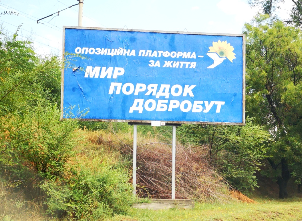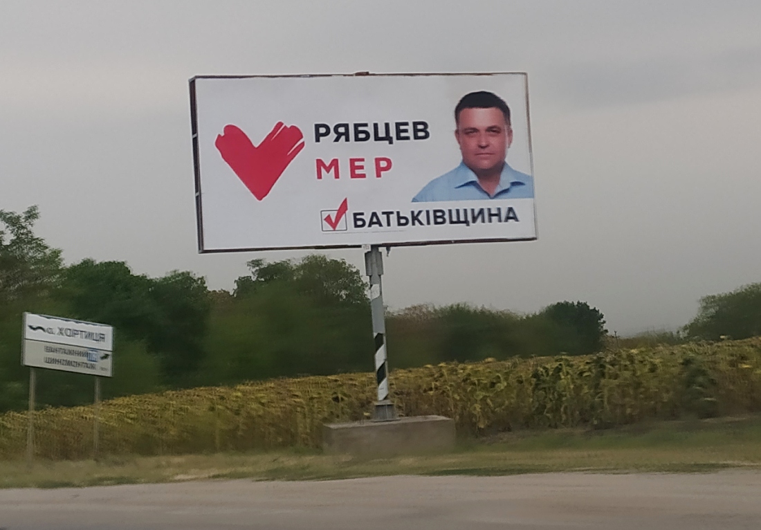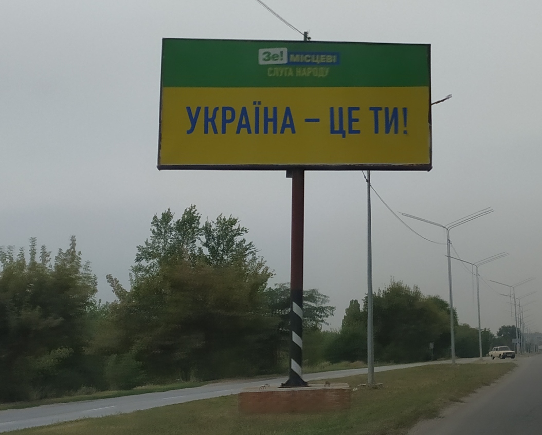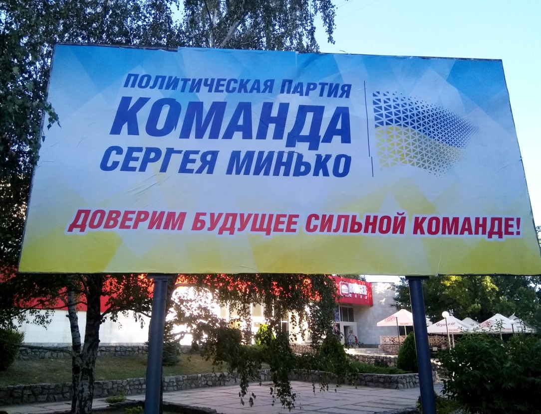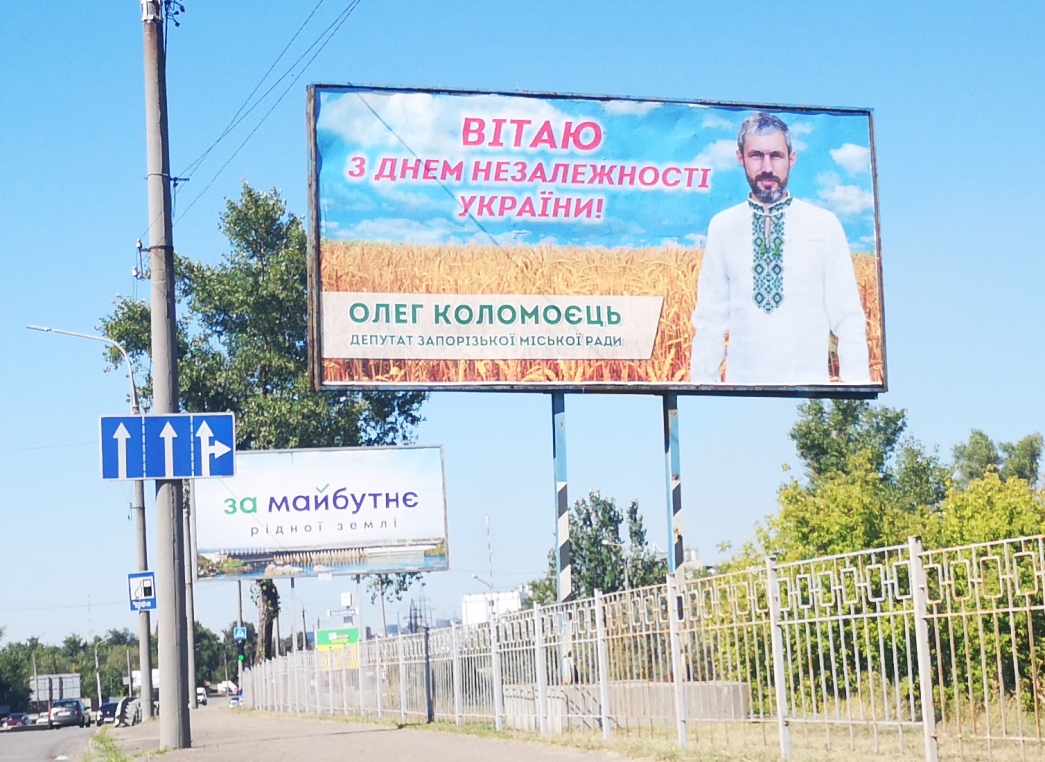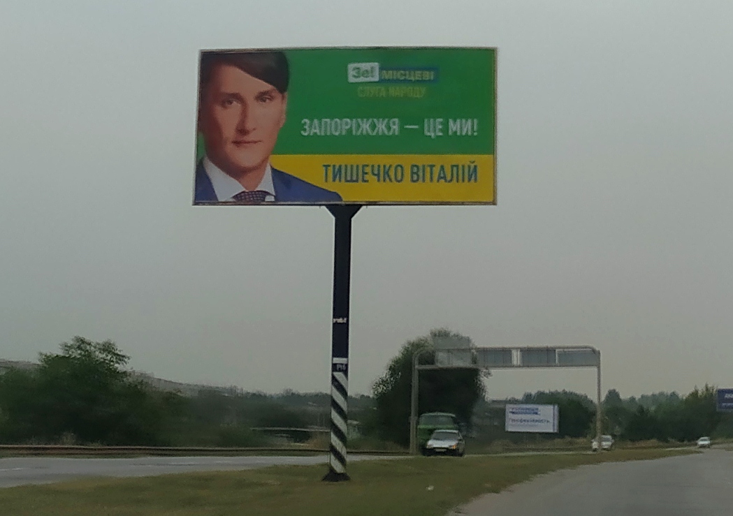Окрім зовнішньої реклами від політичних партій «Наш край», «Опозиційна платформа – За життя», «Перемога Пальчевського», «Європейська Солідарність», «Батьківщина», «За майбутнє», «Слуга народу», які фіксувалися по області в другій половині серпня – тепер були помічені борди «Партії зелених України» та «Справжні дії», а також матеріали зі словом «Порядок» та кольорами й шрифтами подібними до тих, що використовує однойменна партія. В Мелітополі зустрічаються борди політпартії «Команда Мінька».