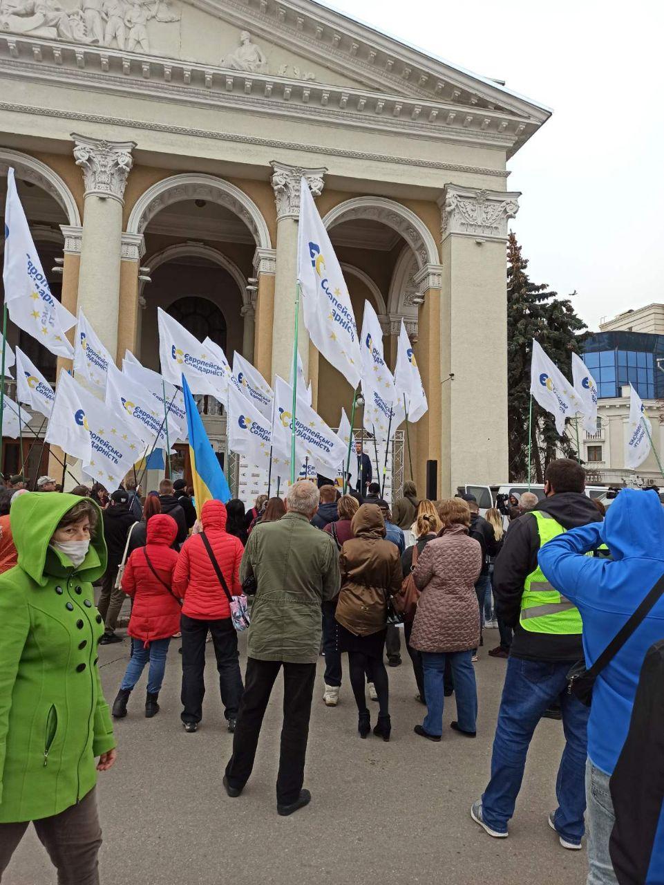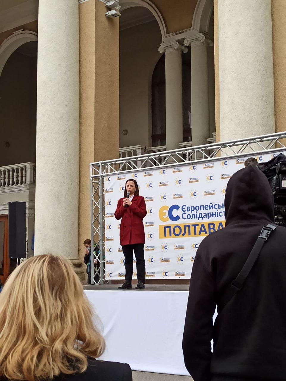 2 жовтня на Театральній площі Полтави відбувся мітинг «Захистимо закон і справедливість в Україні», про що заздалегідь повідомили у Facebook. На сцені виступали кандидат від «Євросолідарності» на посаду Полтавського міського голови Андрій Карпов, його кременчуцький колега Сергій Ярош, нардеп Микола Княжицький та інші представники політичної сили.