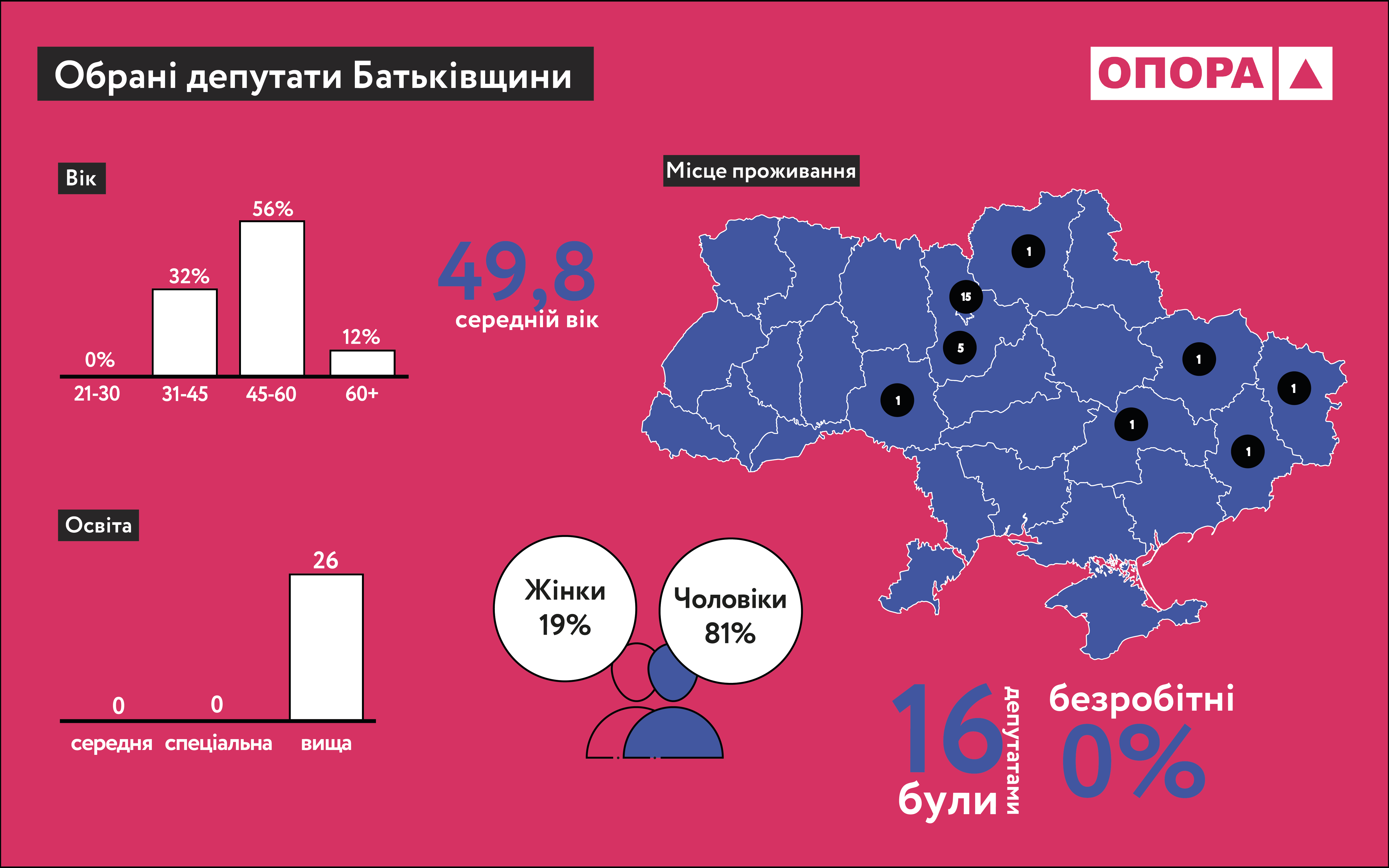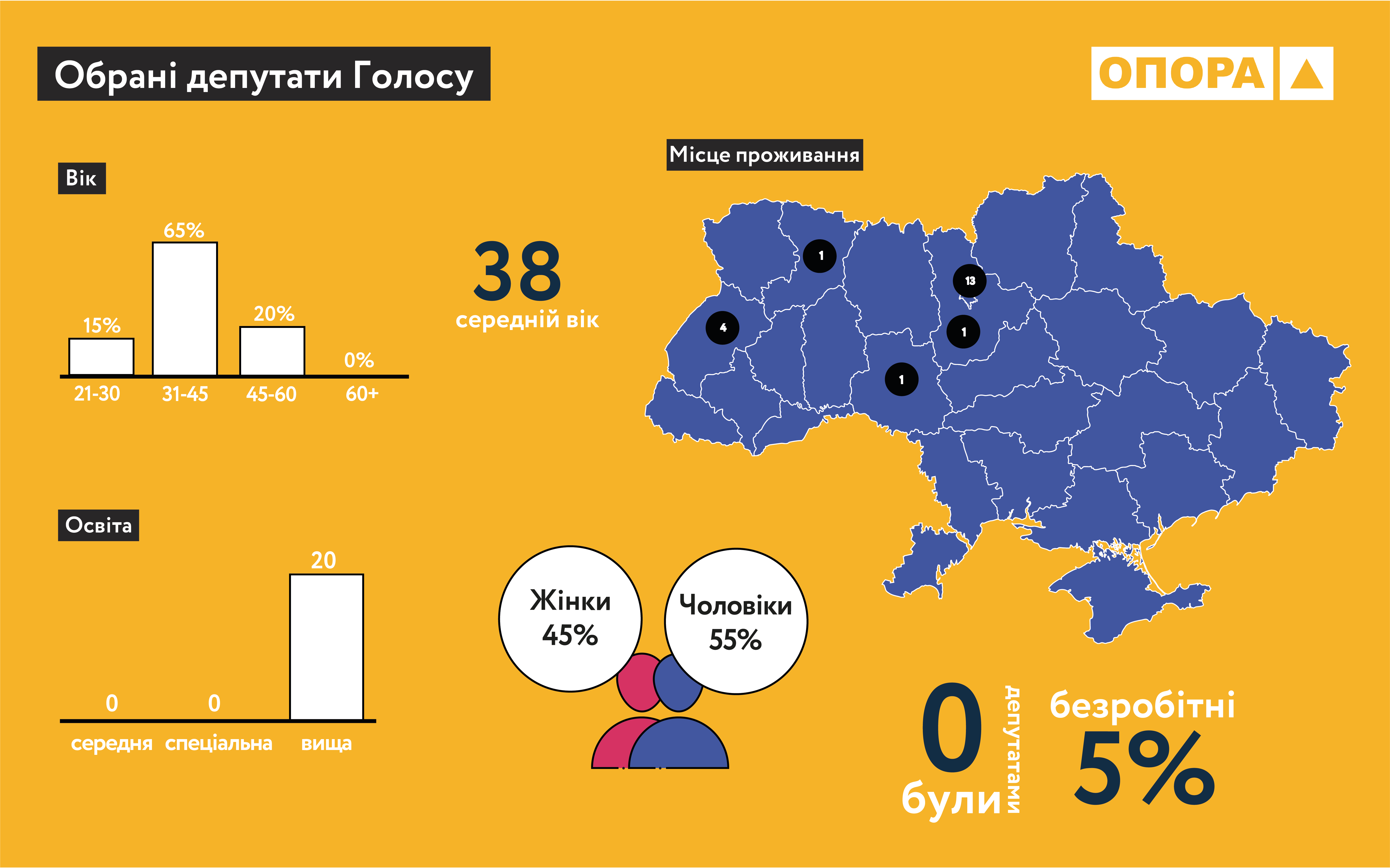30 осіб на момент обрання були безробітними. Це на 5 осіб менше, ніж у попередньому скликанні.