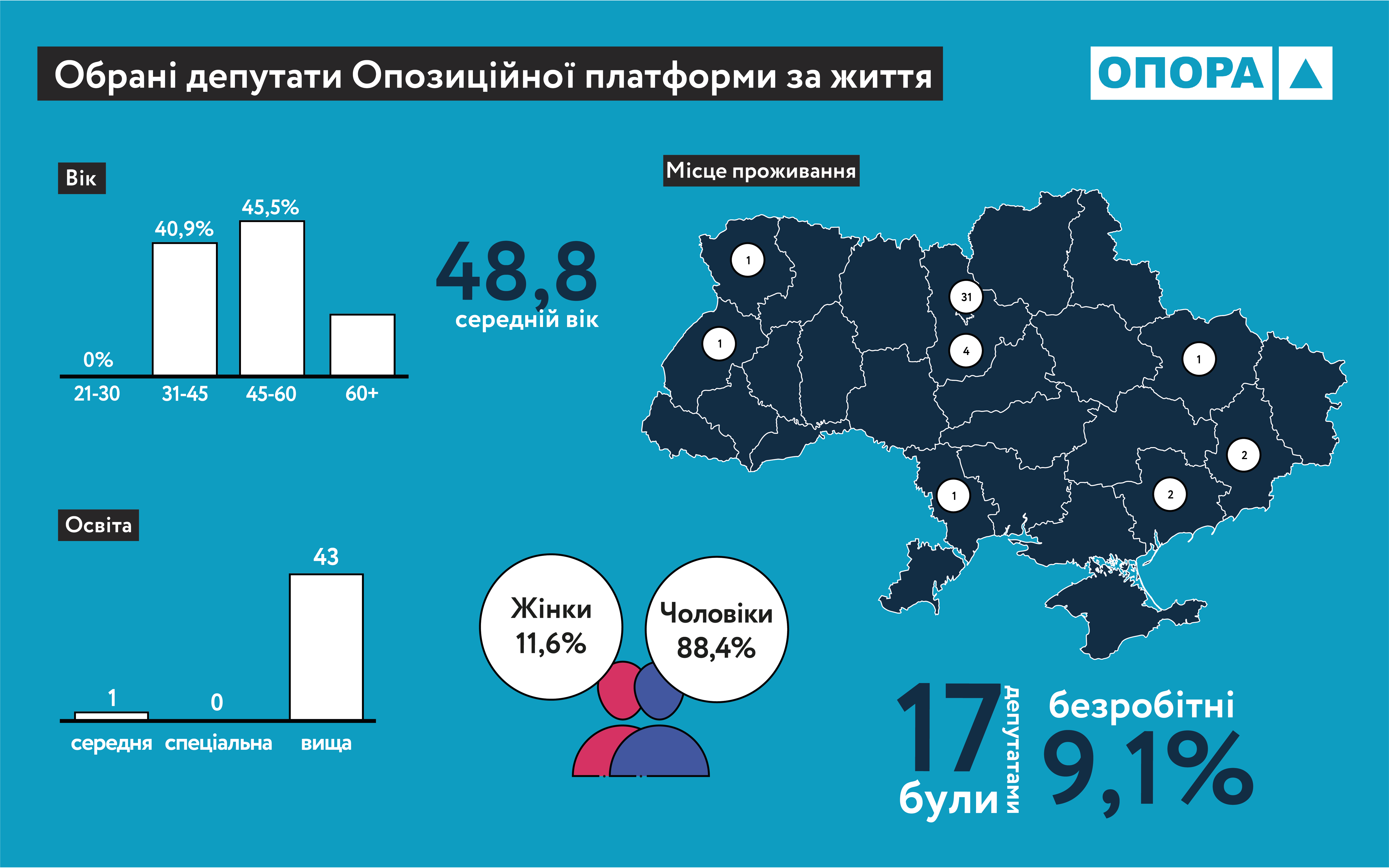 Верховна Рада 9-го скликання оновиться на 80,4%. Крім того, склад парламенту помолодшає в середньому на 7,4 років, адже новообраних майбутніх нардепів віком 21-45 років збільшилось загалом на 26%. Це можна констатувати з огляду на дані з майже повністю опрацьованих електронних протоколів на сайті ЦВК. Громадянська мережа ОПОРА вирішила проаналізувати вік, стать, освіту, попередній досвід роботи кандидатів, які незабаром стануть майбутніми народними обранцями. За результатами аналізу ми «намалювали» портрет нового скликання парламенту.
